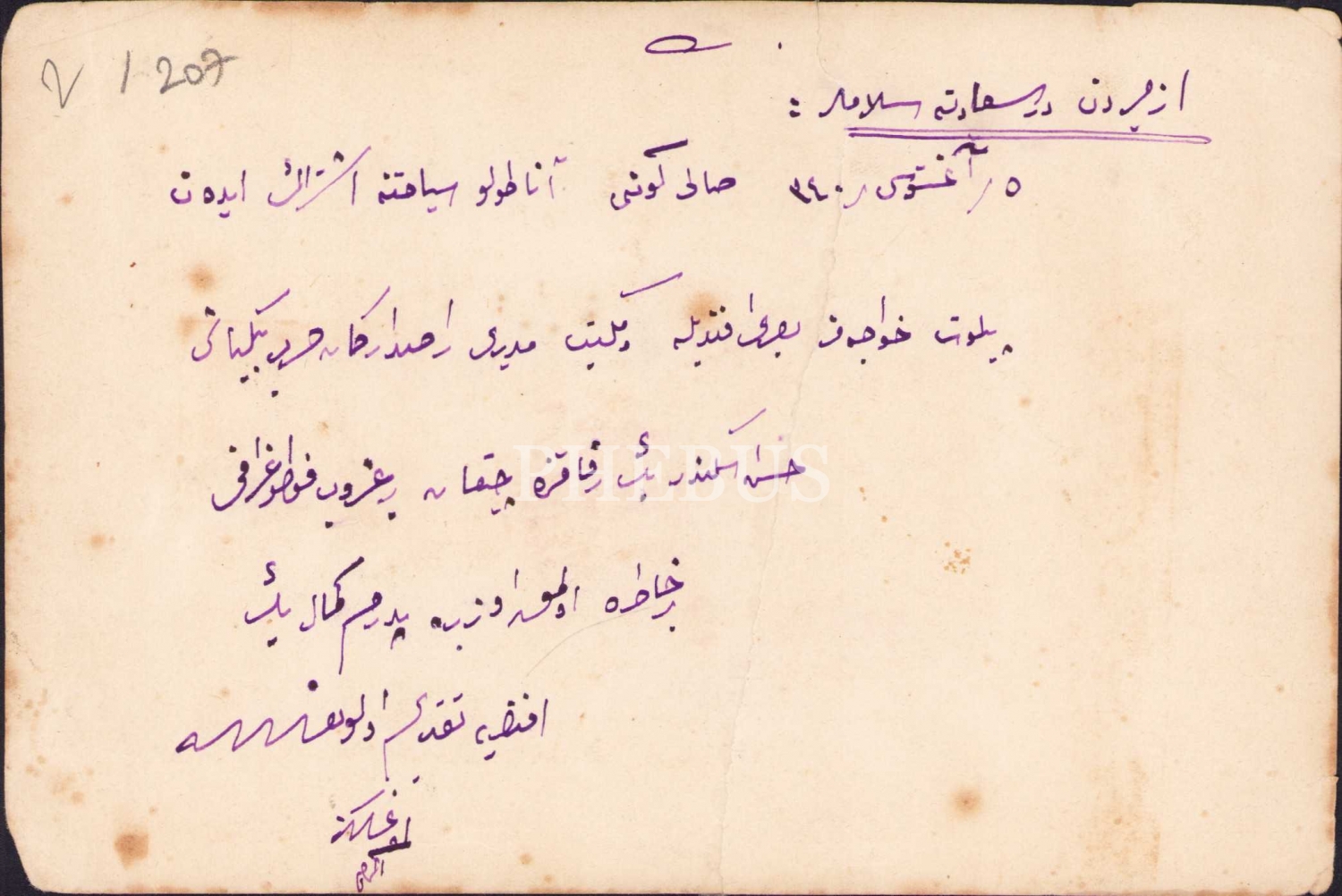 Arkası İlhami Bey'den ailesine 'İzmir'den Dersaadet'e selamlar" şeklinde ithaflıdır.