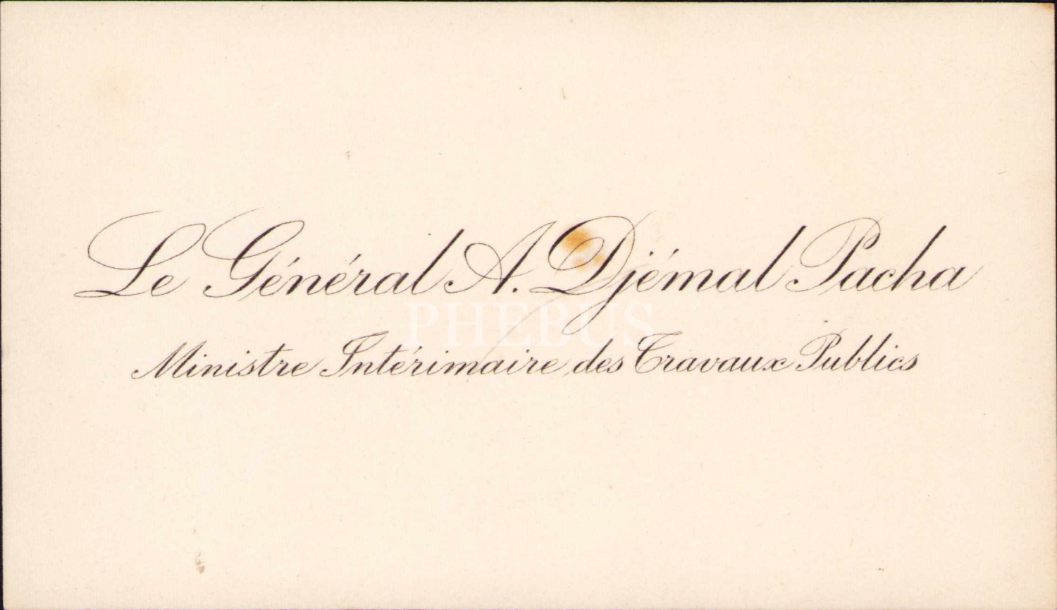 Cemal Paşa'nın Nafia Nazırlığı kartviziti, Fransızca, 10x6 cm