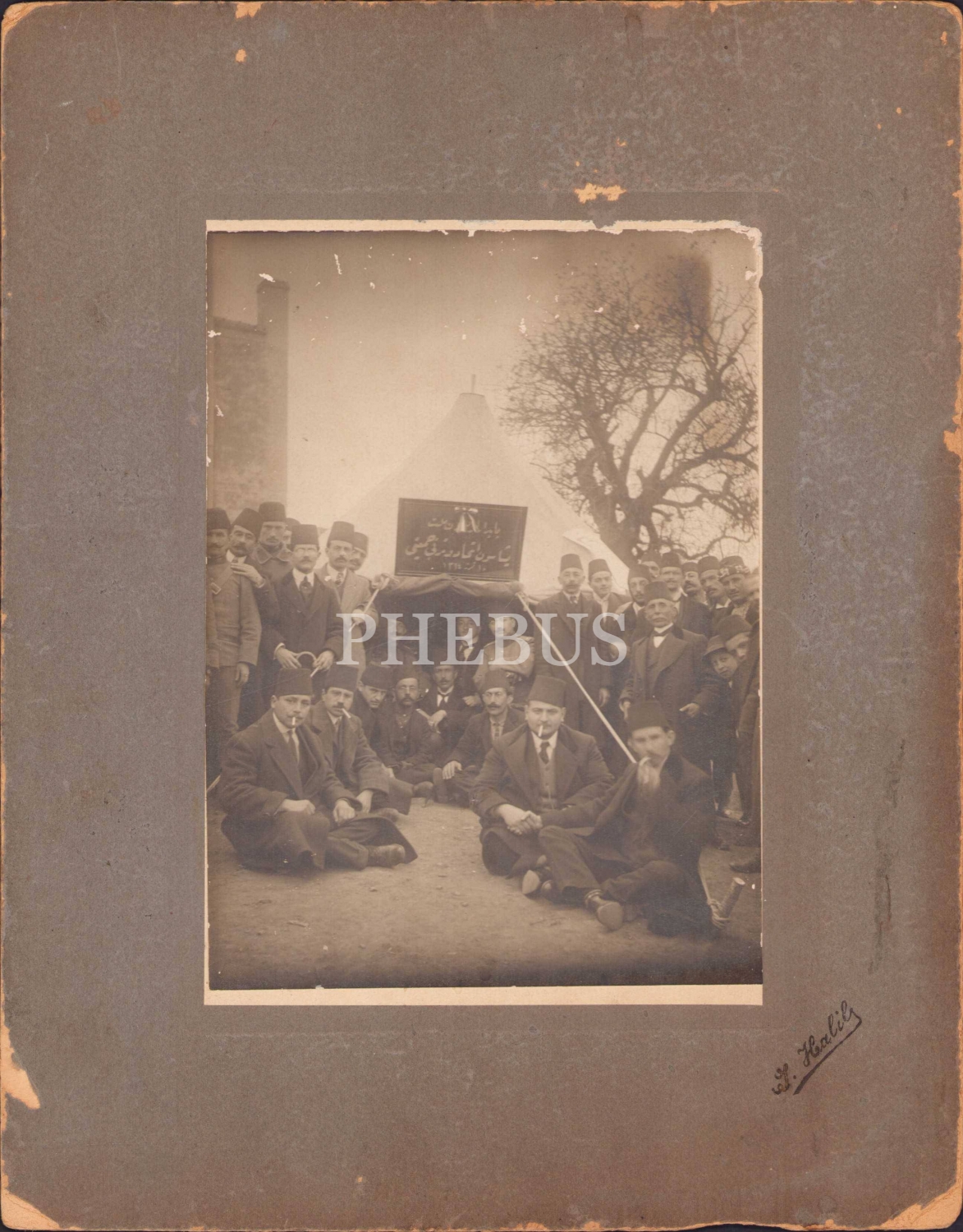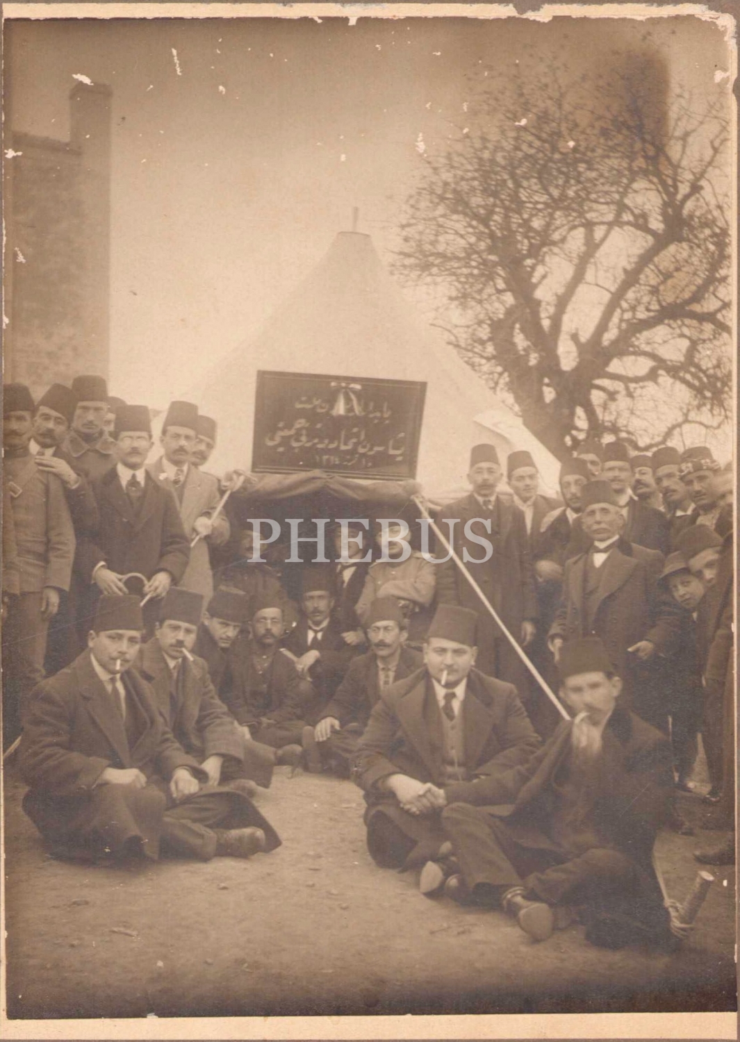 Osmanlıca "Yaşasın İttihat ve Terakki Cemiyeti" yazılı İkinci Meşrutiyet Bayramı kutlamaları, Fotoğrafçı İ. Halil, 13 17x13 cm