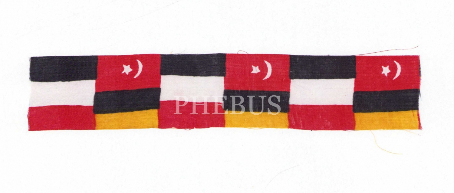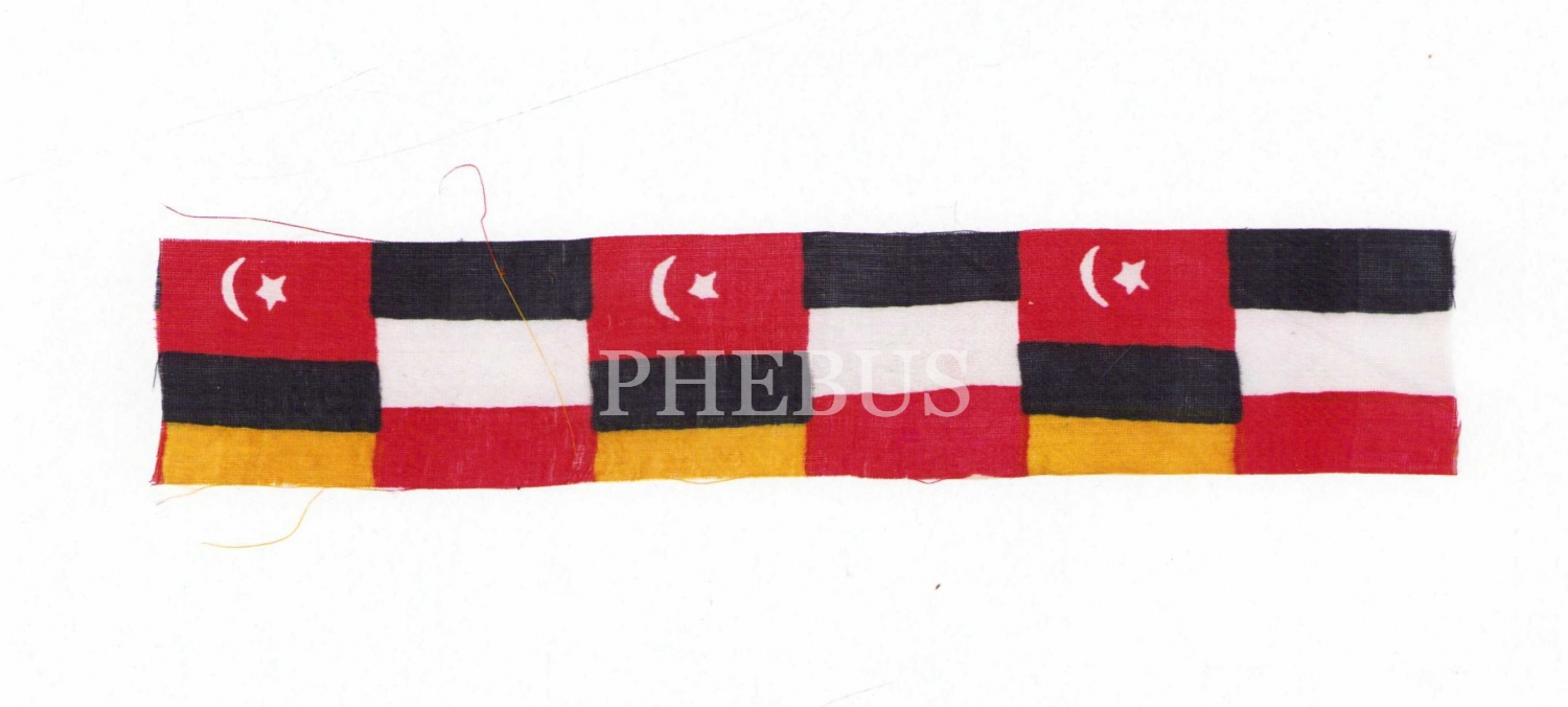 Birinci Cihan Harbi İttifak devletleri bez bayrak, Osmanlı Alman ve Avusturya bayrakları, 18x4 cm