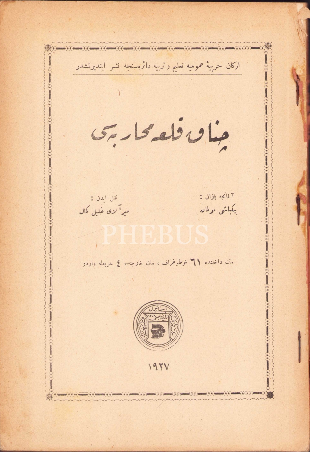 Çanakkale Muharebesi, Almanca Yazan: Binbaşı Mülman, Tercüme: Miralay Halil Kemal, 1927 tarihli, Askeri Matbaa, haliyle, 128 sayfa, 61 fotoğraf ve 3 harita mevcut, 16x24 cm