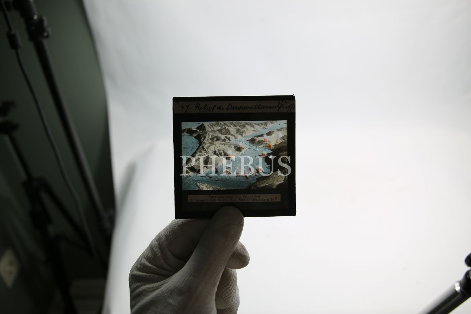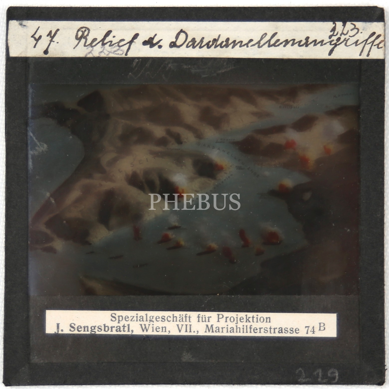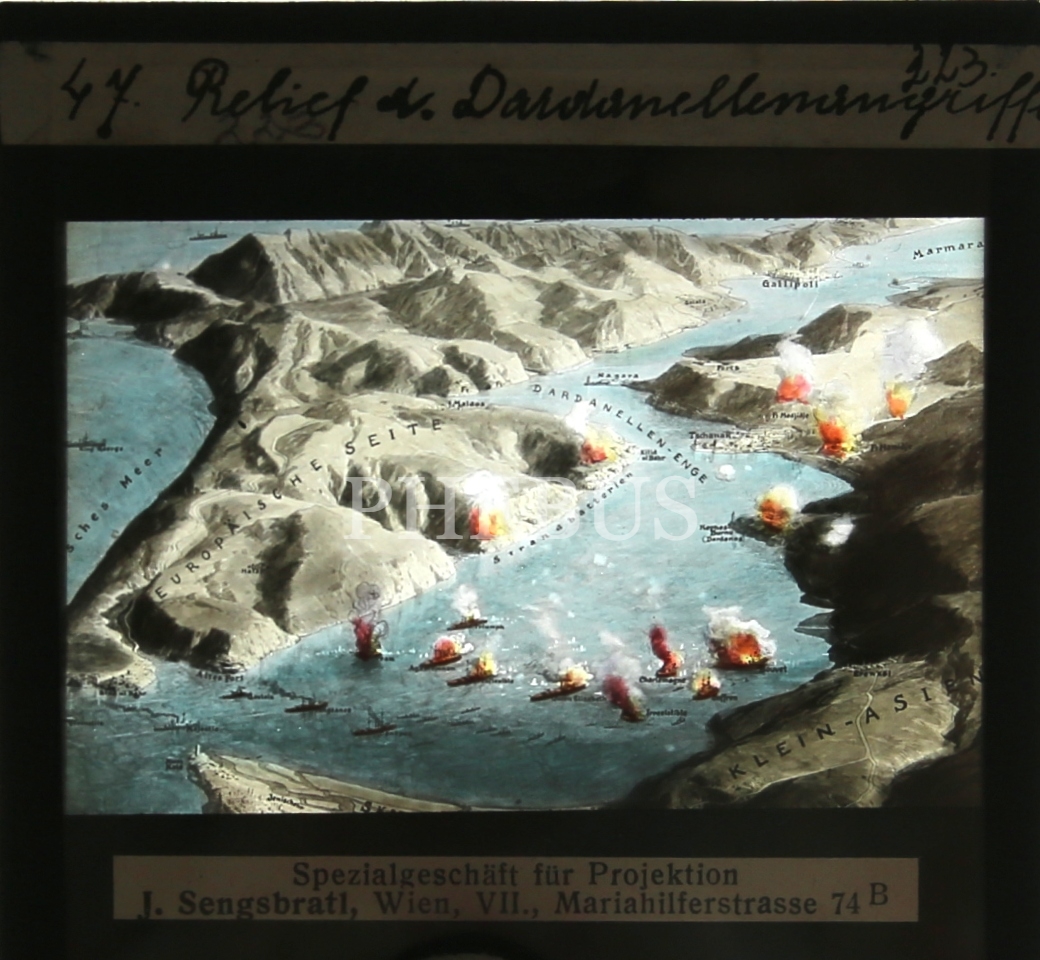 Birinci Cihan Harbi'nde Çanakkale Boğaz Savaşı negatif cam dia, Almanca, 8x8 cm