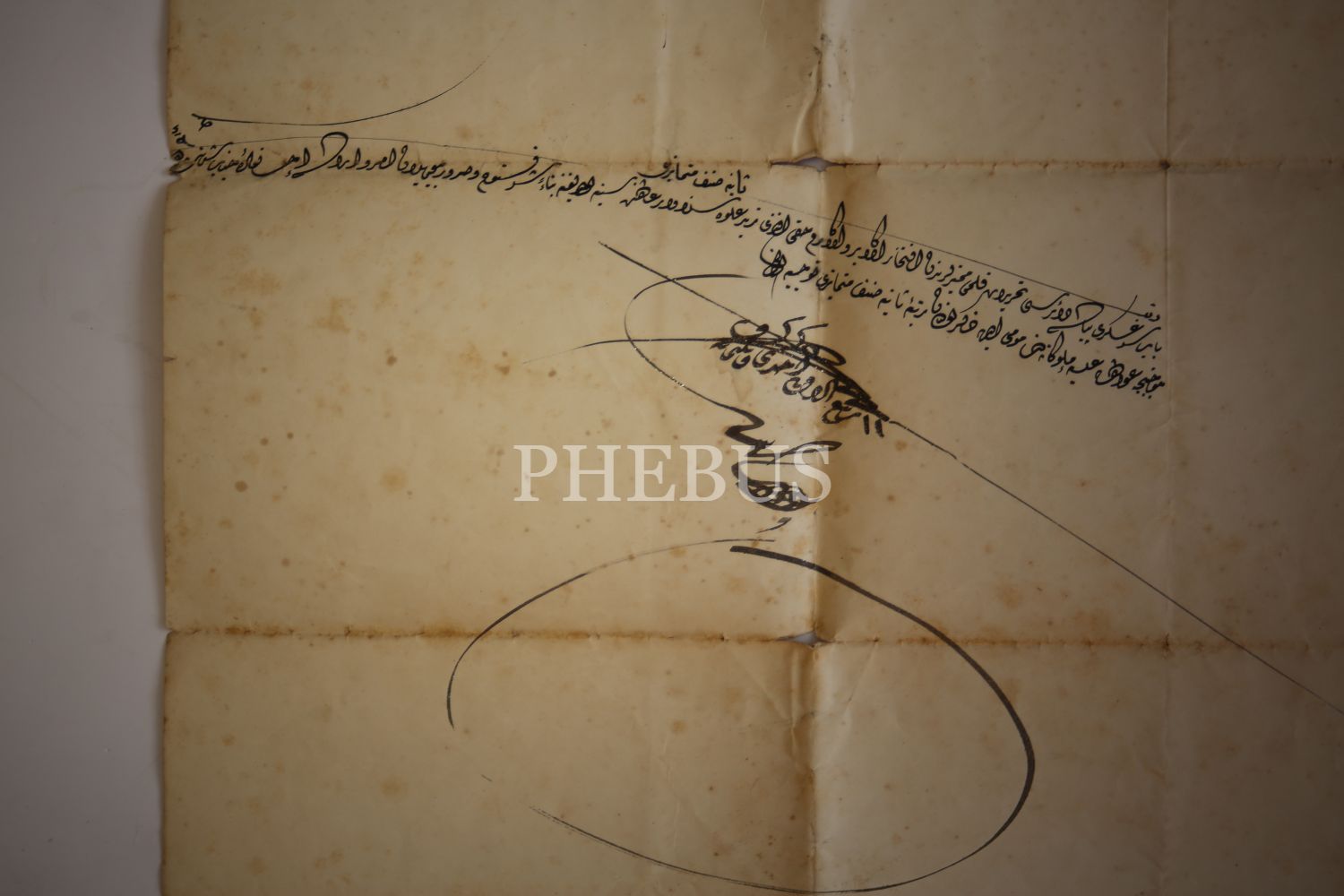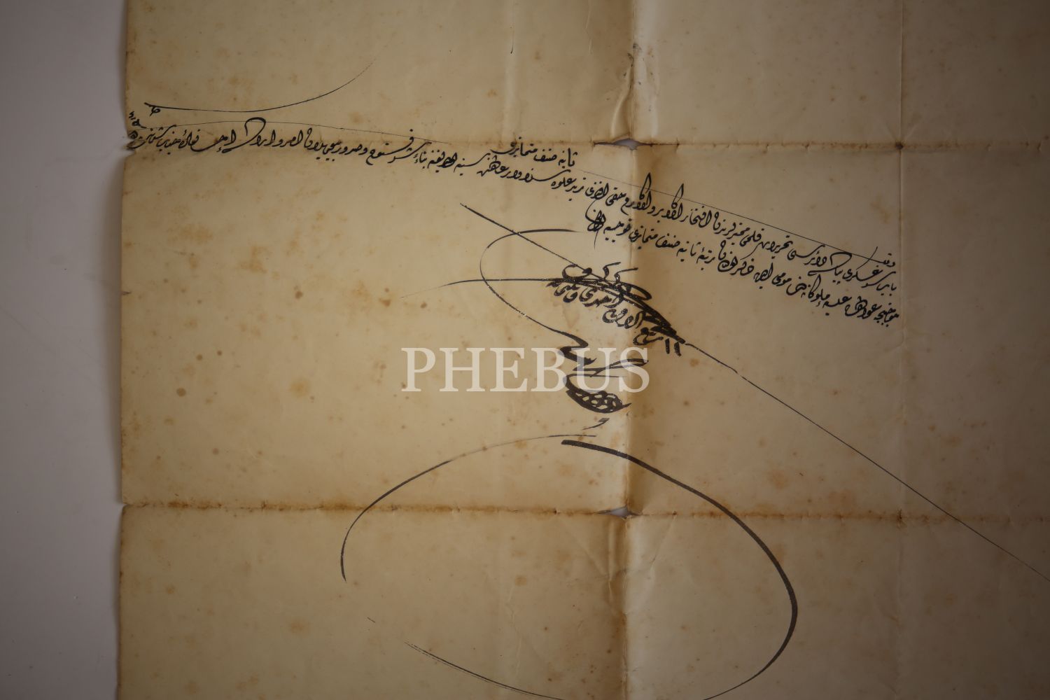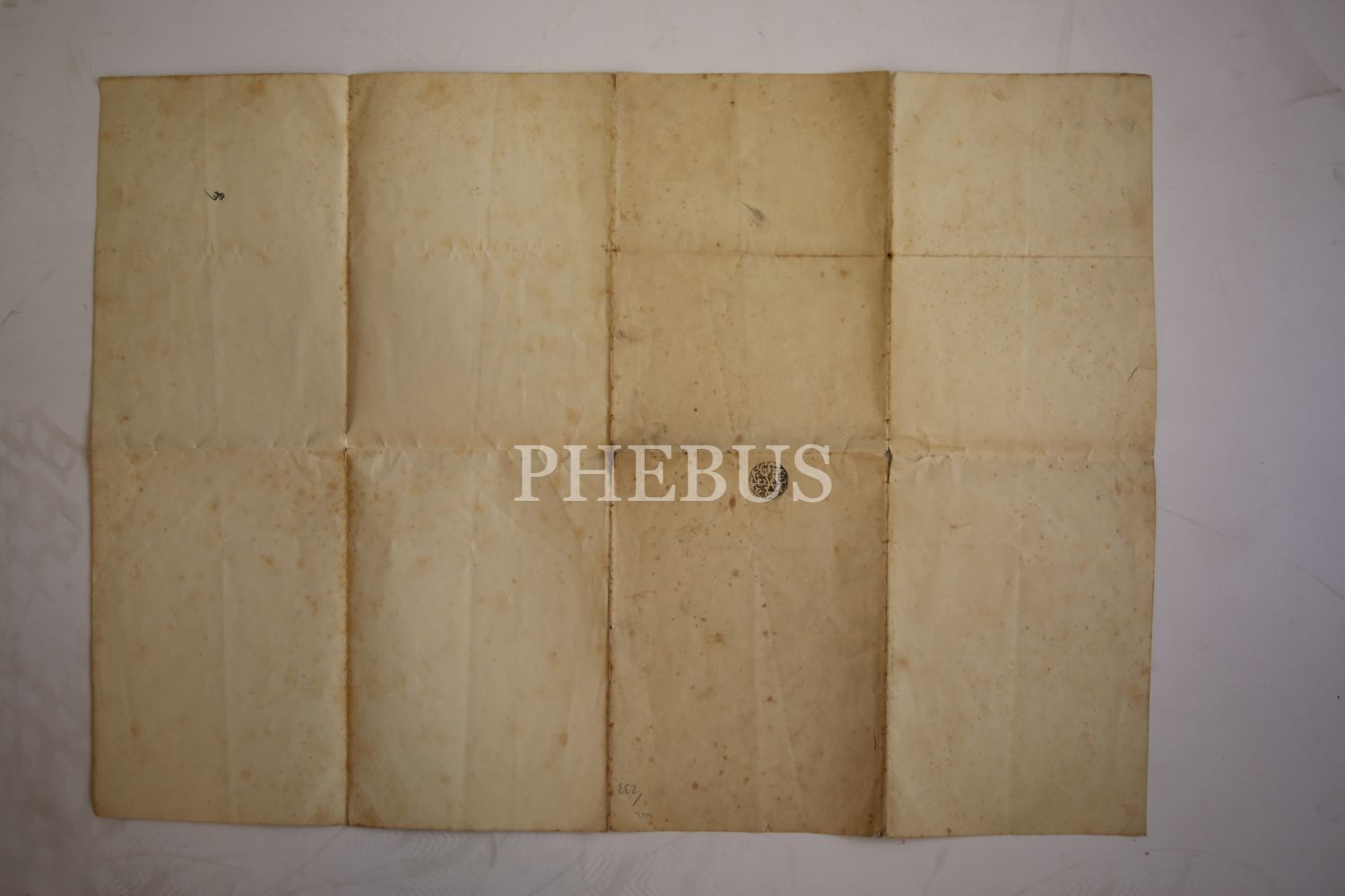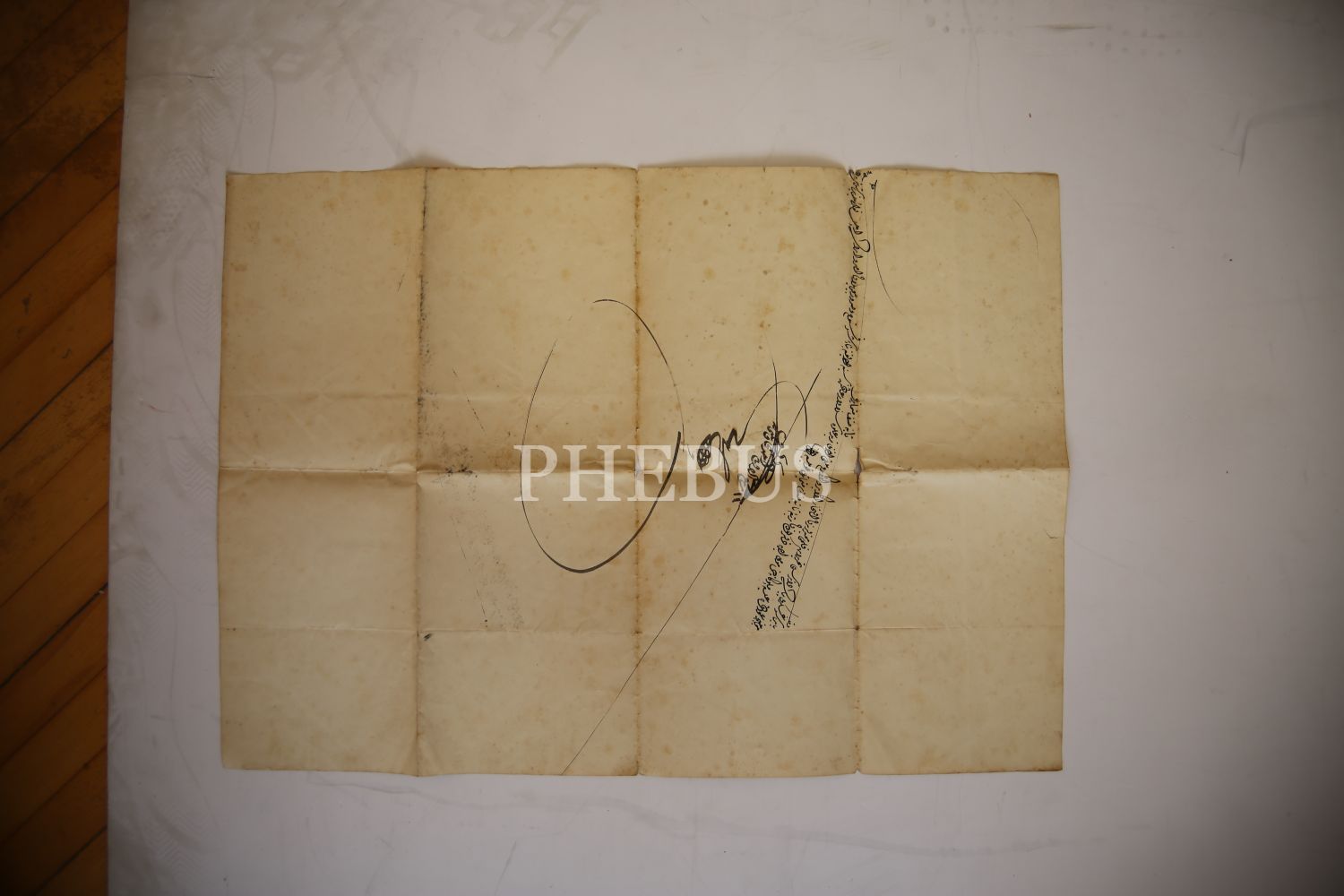 Askeri Piyade Tahrir Kalemi Mümeyyizlerinden Hakkı Efendi'nin terfi beratı, mühürlü, Osmanlıca, 40x60 cm