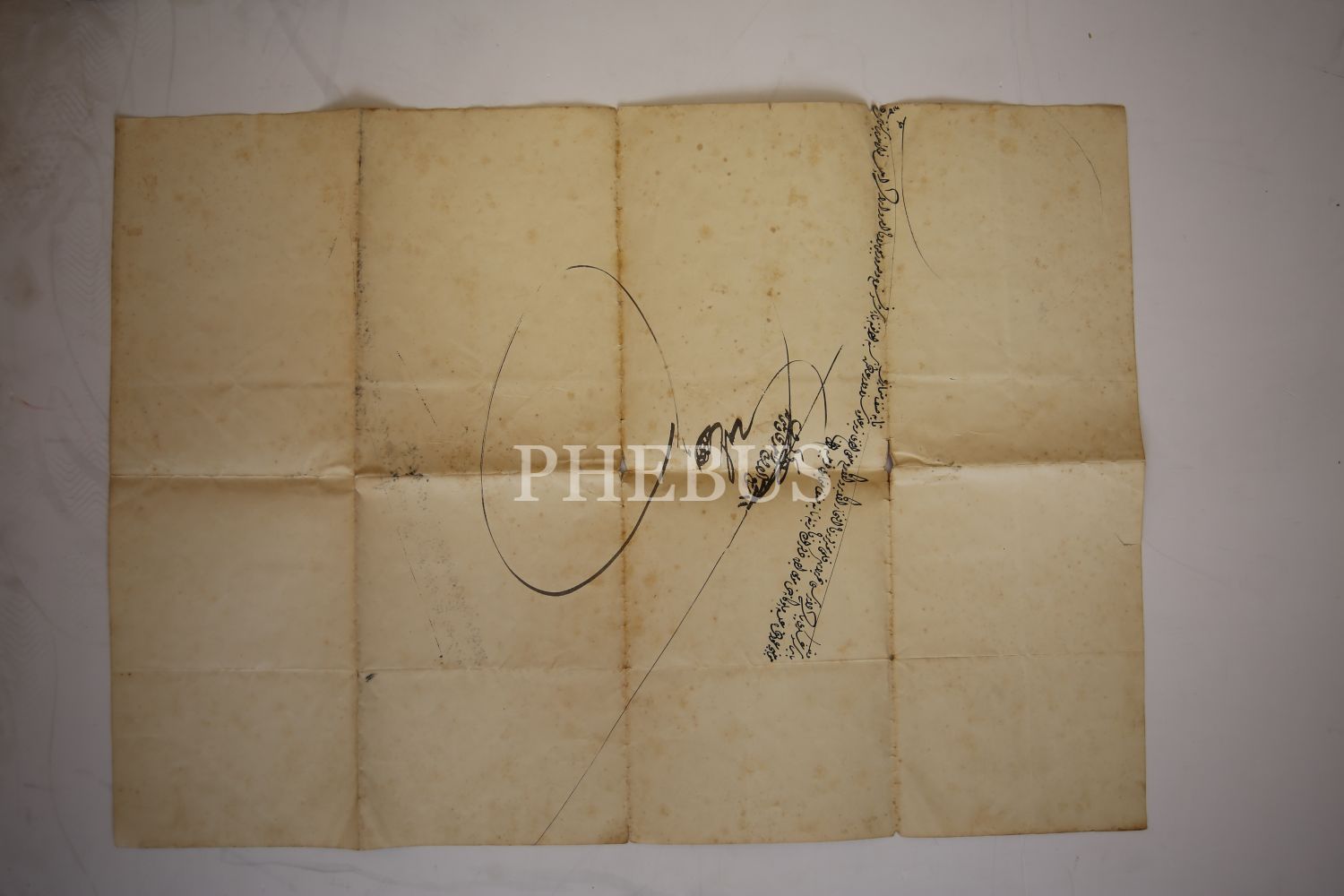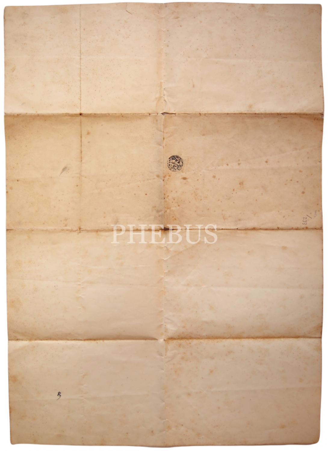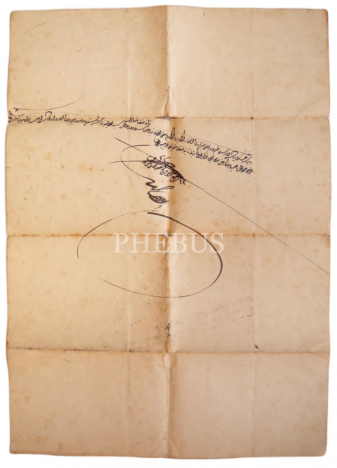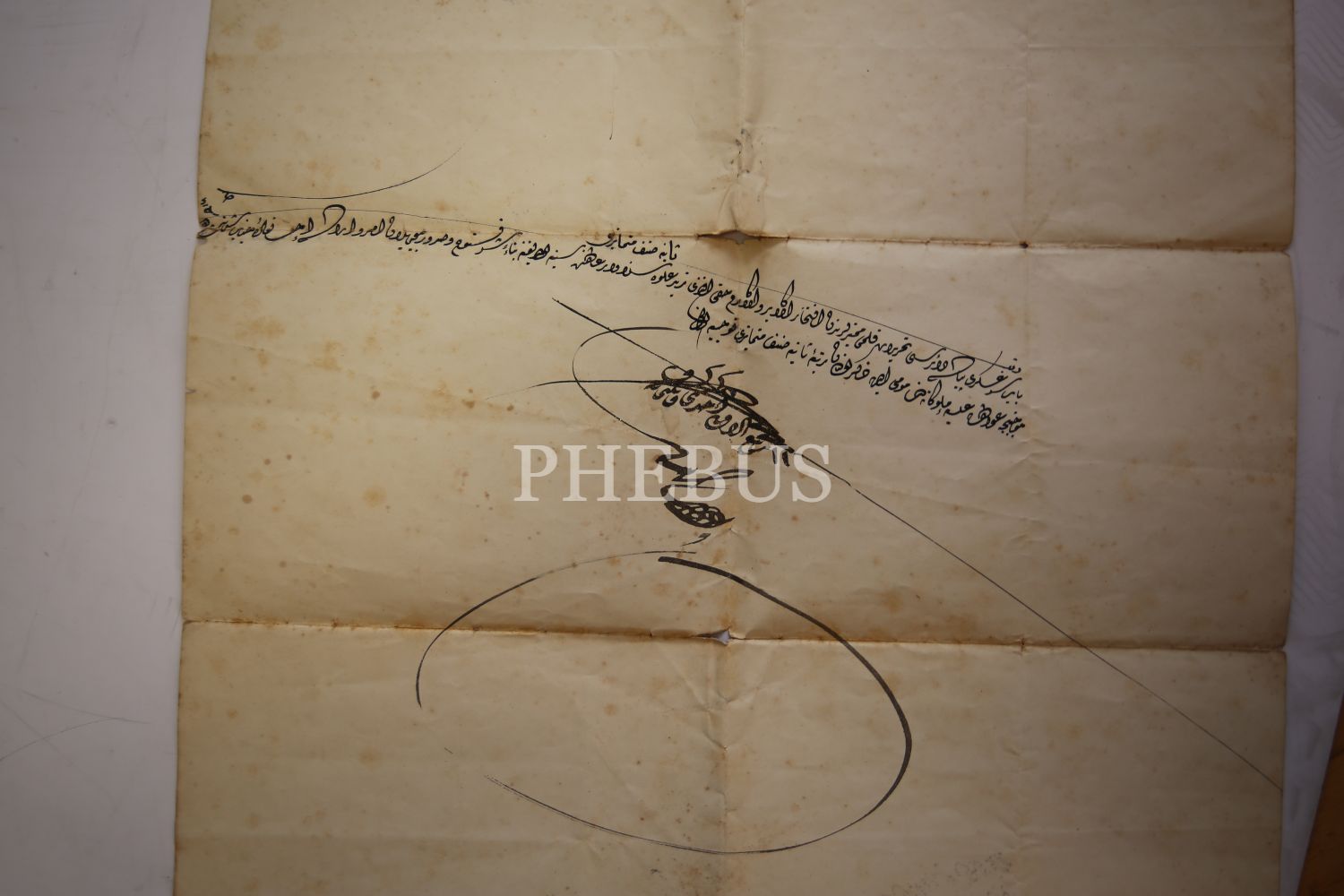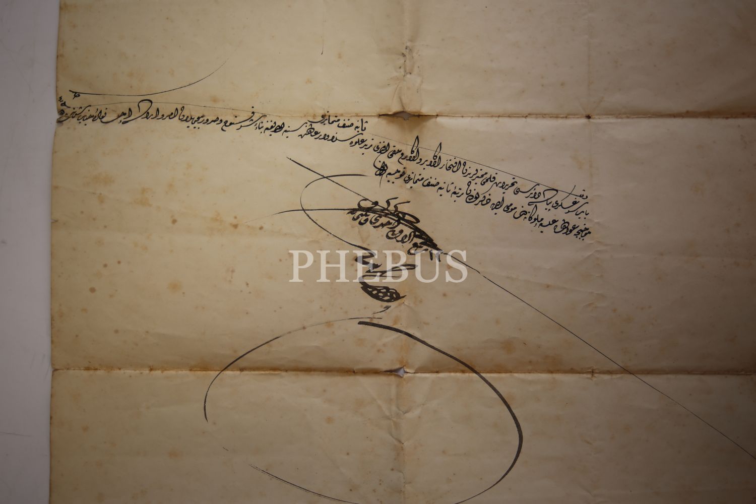 Askeri Piyade Tahrir Kalemi Mümeyyizlerinden Hakkı Efendi'nin terfi beratı, mühürlü, Osmanlıca, 40x60 cm