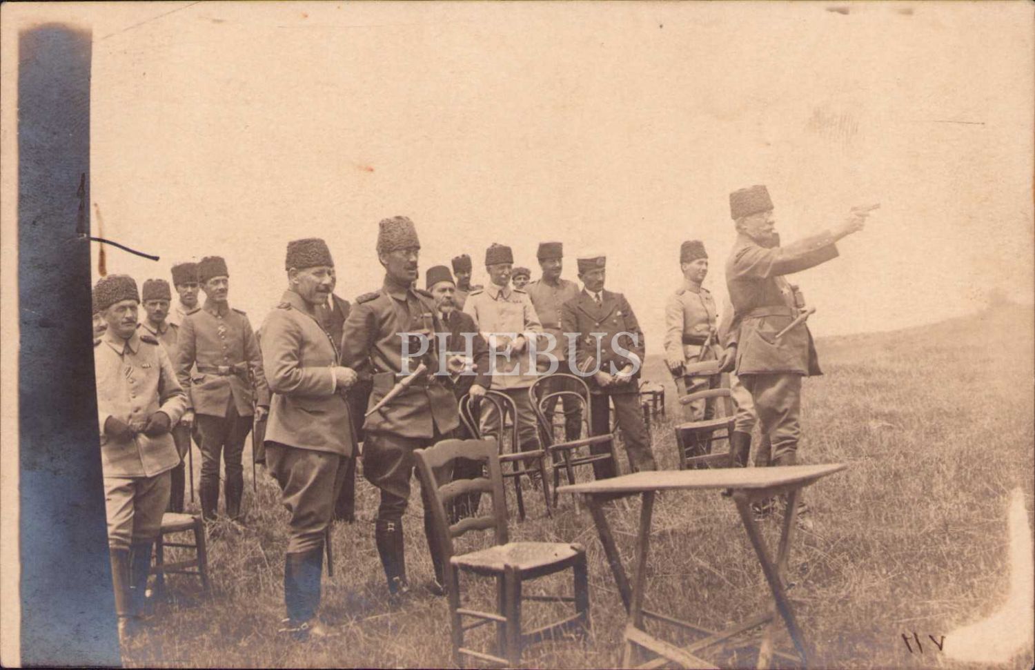 Birinci Cihan Harbi'nde Yusuf İzzet Paşa komutanlarla ateş taliminde, 1334 tarihli, Osmanlıca.
