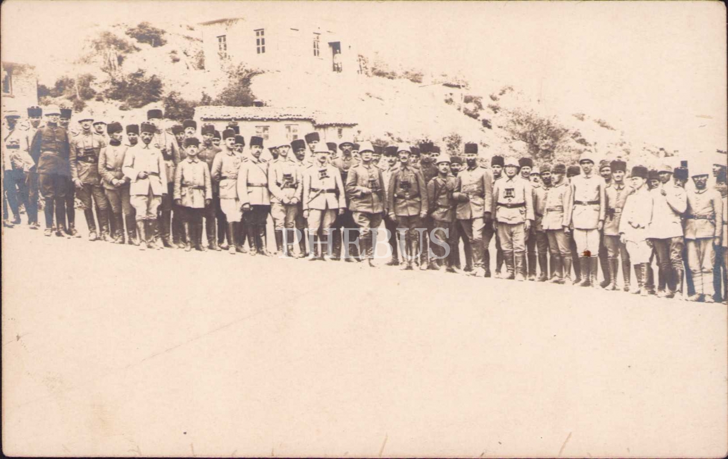 Birinci Cihan Harbi'nde Yusuf İzzet Paşa ve askerler hatıra fotoğrafı, 1334 tarihli.