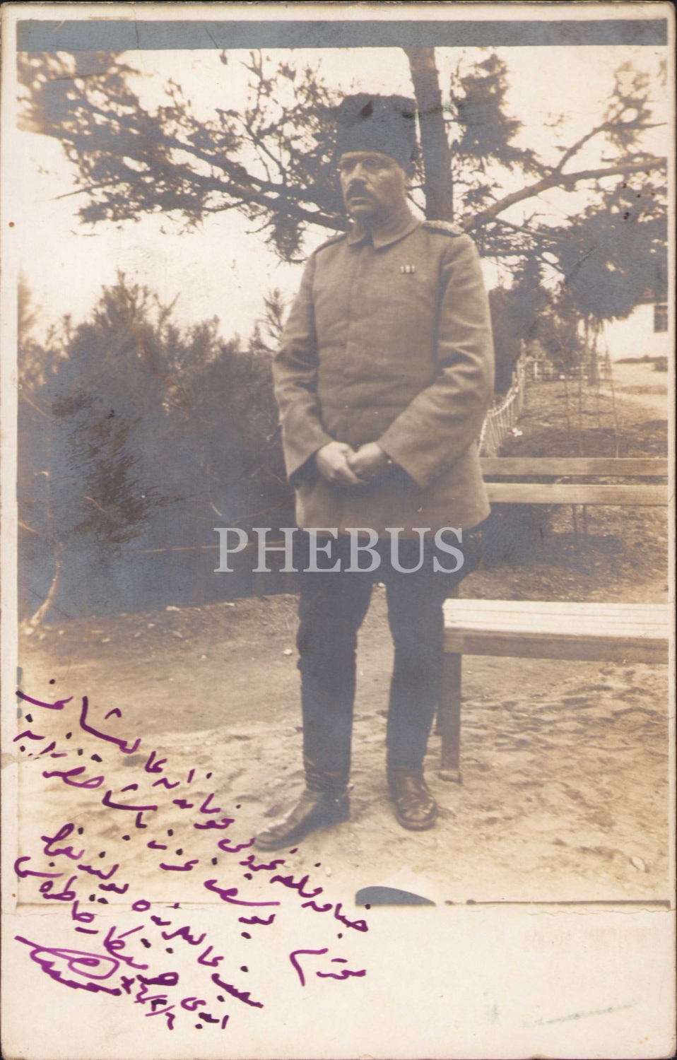 Birinci Cihan Harbi'nde Yusuf İzzet Paşa'ya ithaf edilmiş üniformalı kalpaklı asker fotoğrafı, 1334 tarihli.