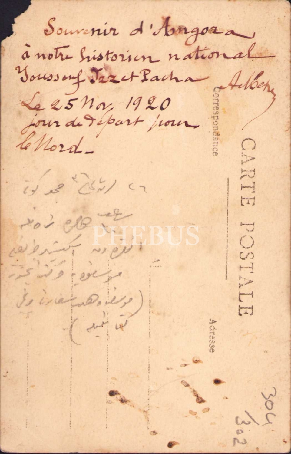 Souvenir d'Angora [Ankara Hatırası], Yusuf İzzet Paşa'ya ithaflı, 1336 tarihli, arkası Osmanlıca ve Fransızca.