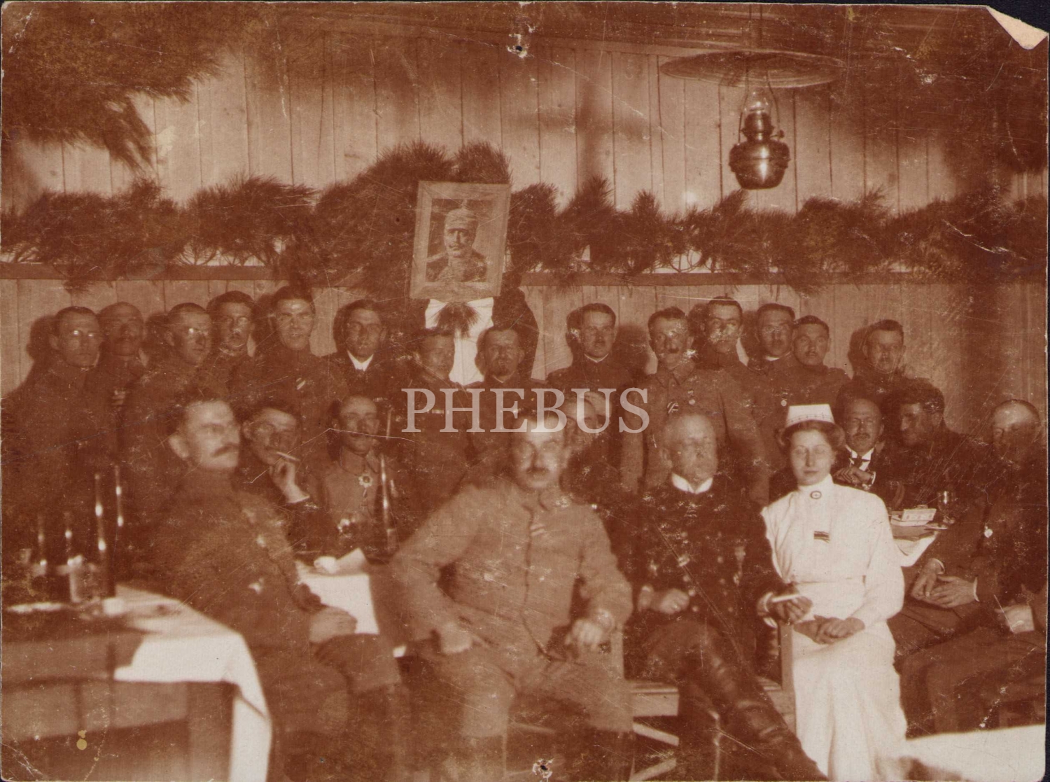 Son Alman İmparatoru Kayser II. Wilhelm'in fotoğrafı altında Alman ve Osmanlı subayları, 1918 tarihli.