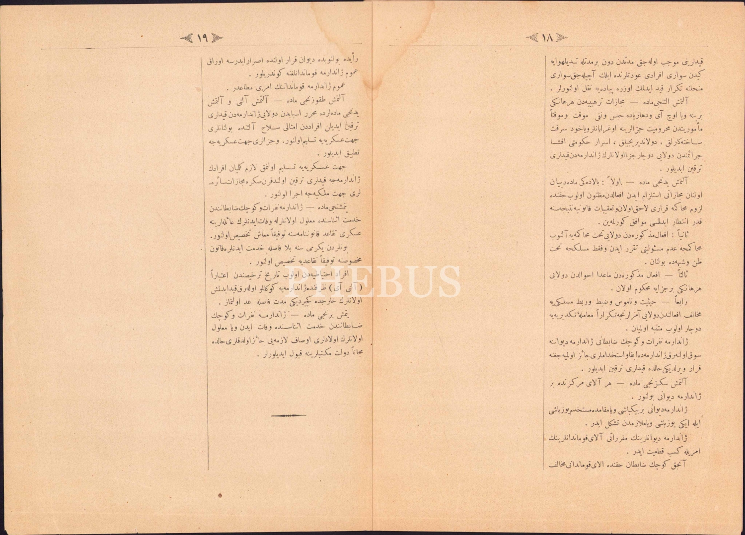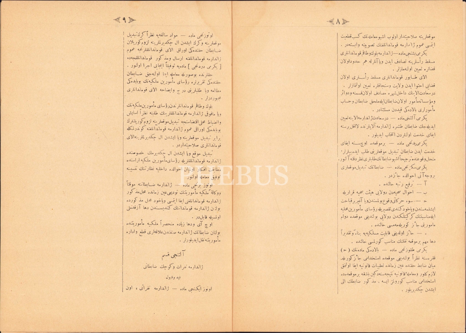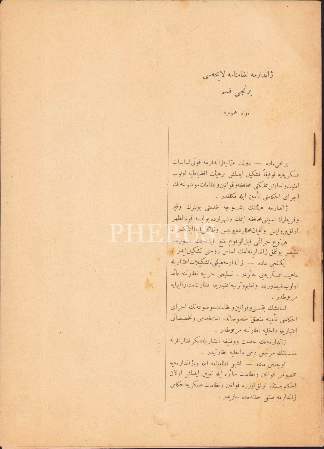 Devlet-i Osmaniye Jandarma Nizamname Layihası, Mevad-ı Umumiye [Genel Maddeler], Osmanlıca, 19x7 cm