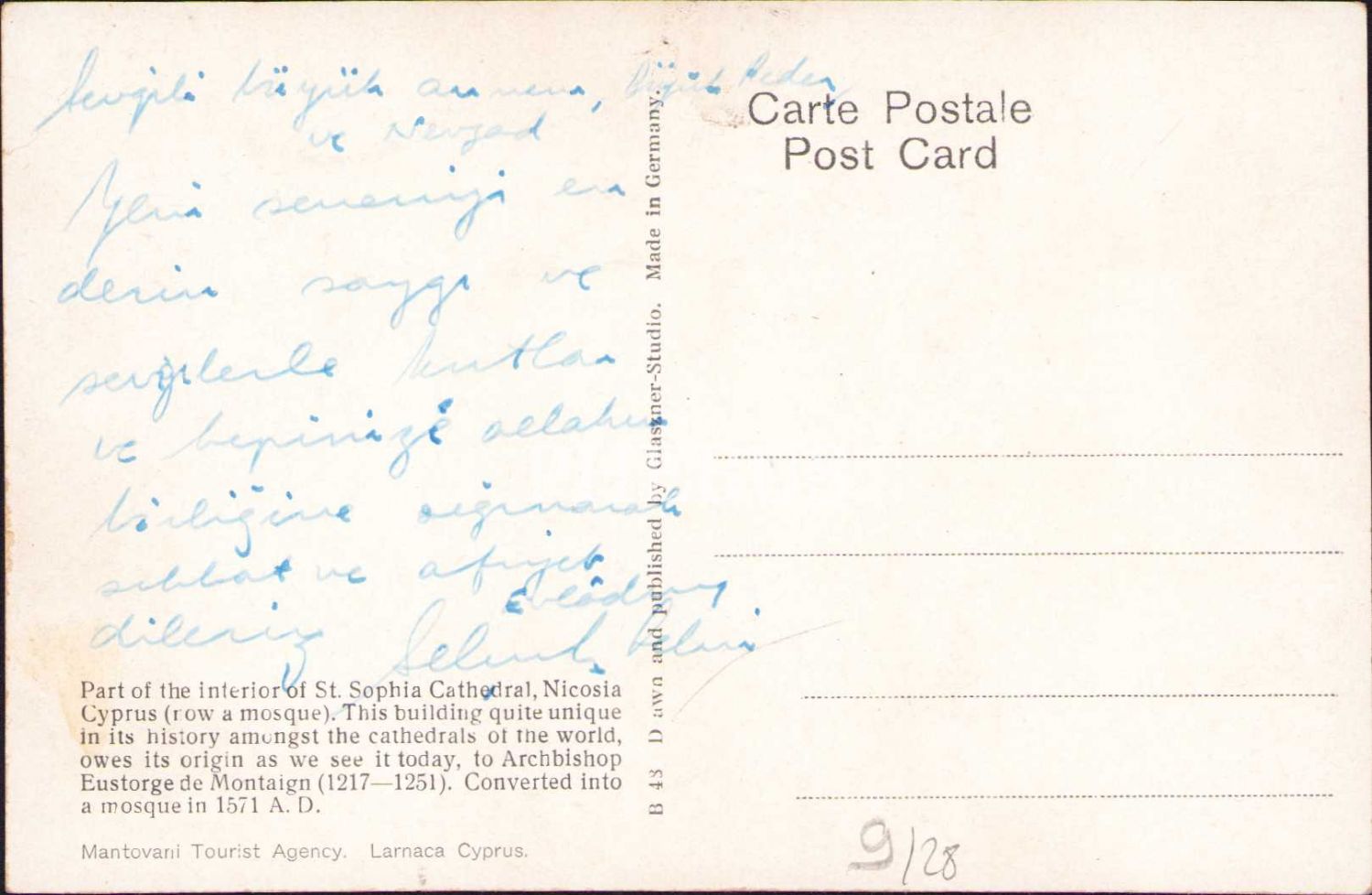 Kıbrıs, Girne Saint Sophia Cathedral Camii, editör Mantovani Tourist Agency, Larnaca Cyprus, ithaflı