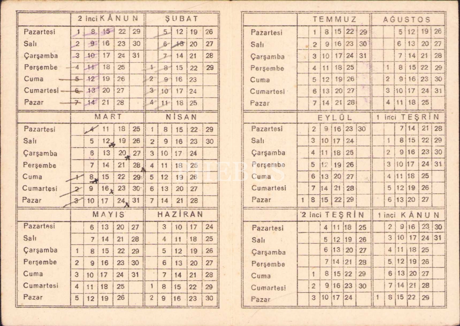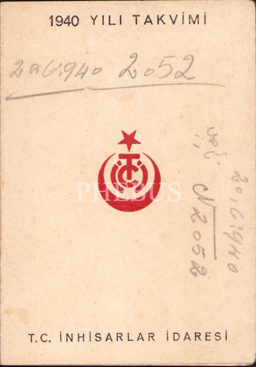 T.C. İnhisarlar İdaresi 1940 yılı takvimi, 6x9 cm