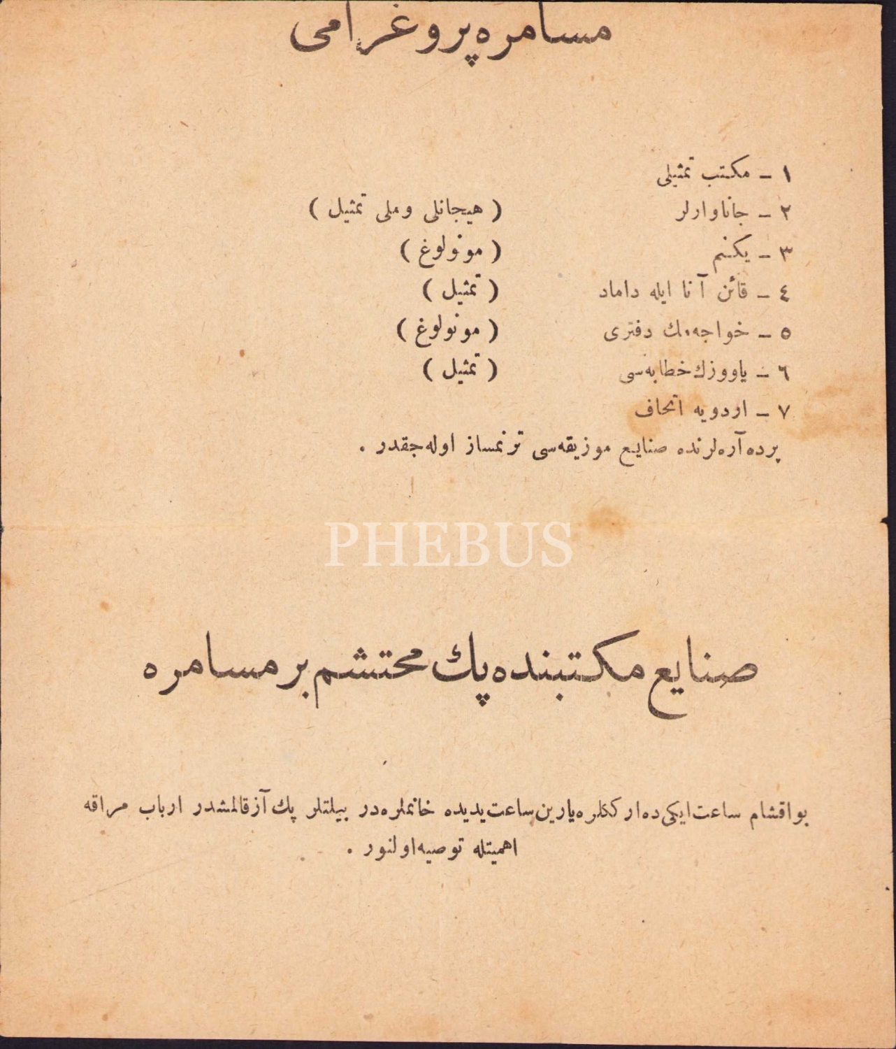 Osmanlıca Sanayi Mektebi müsamere programı, 14x16 cm
