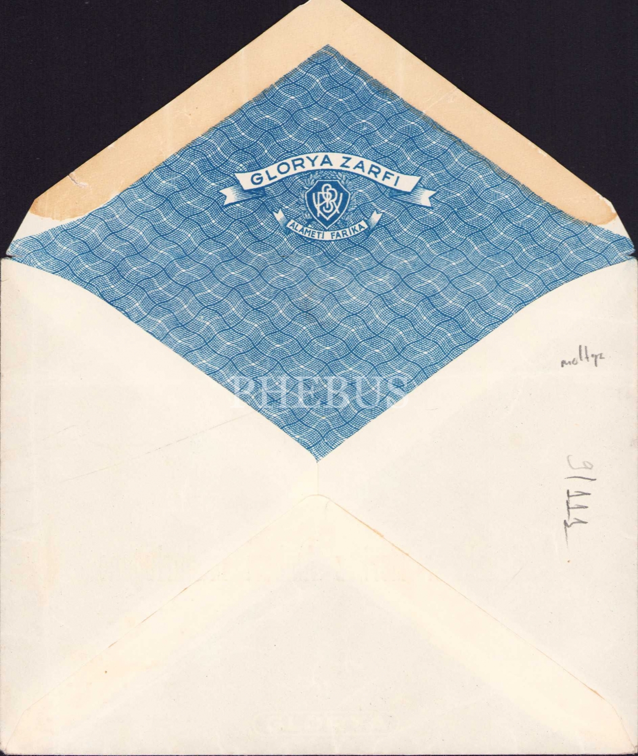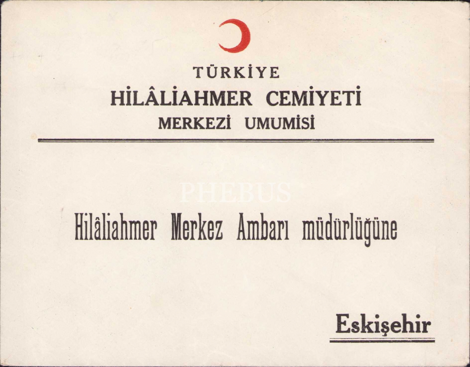 Türkiye Hilaliahmer Cemiyeti Merkez Umumisi antetli Hilaliahmer Merkez Ambarı müdürlüğüne gönderilmiş zarf, 15x11 cm