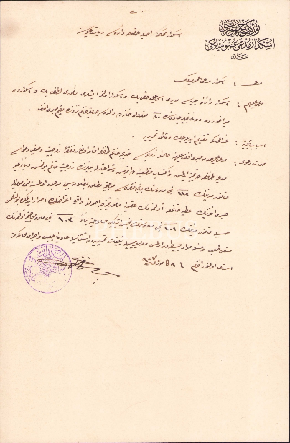 Osmanlıca Türkiye Cumhuriyeti Üsküdar Müddei Umumiliği antetli Üsküdar asliye hukuk dairesine gönderilmiş evrak, 1927, 16x25 cm