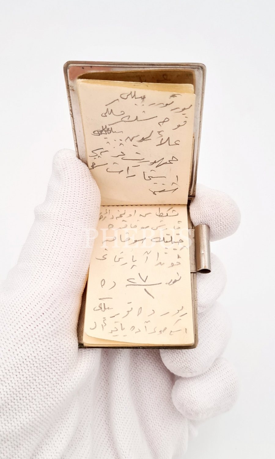 İçerisinde muhtelif notların yer aldığı cep defteri, ince kalemiyle beraber, 4,5x6,5 cm