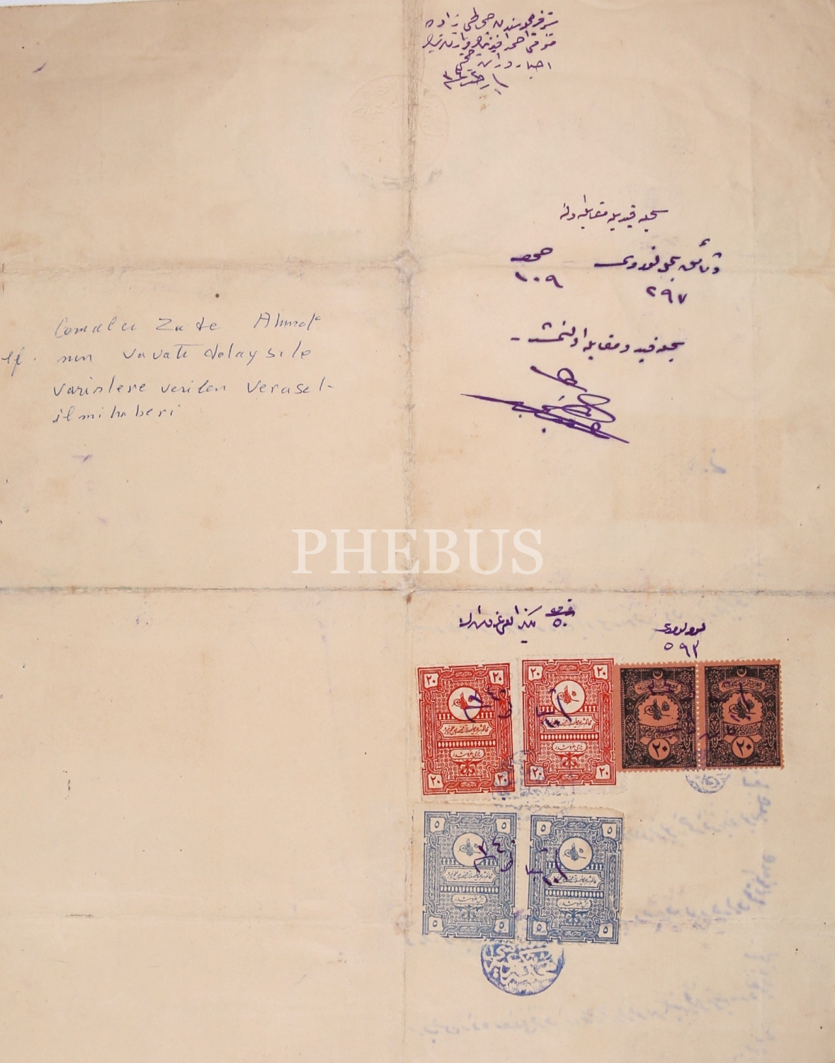 Osmanlıca, Cemalcı Zade Ahmet Efendi'nin vefatı üzerine varislerine verilen veraset ilmuhaberi, 1340, 30x80 cm