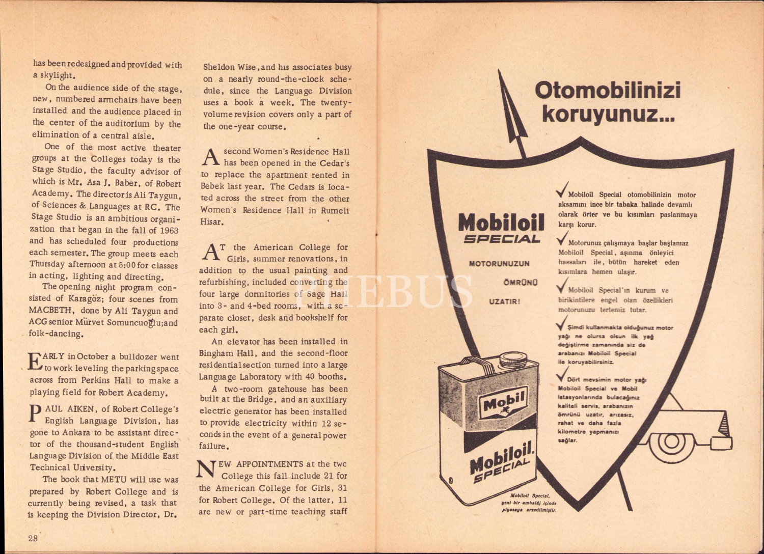 İstanbul Amerikan Colleges, Alumni Bulletin [İstanbul Amerikan Kolejlileri Derneği], İstanbul, 1964, resimli, 32 sayfa, 13x18 cm