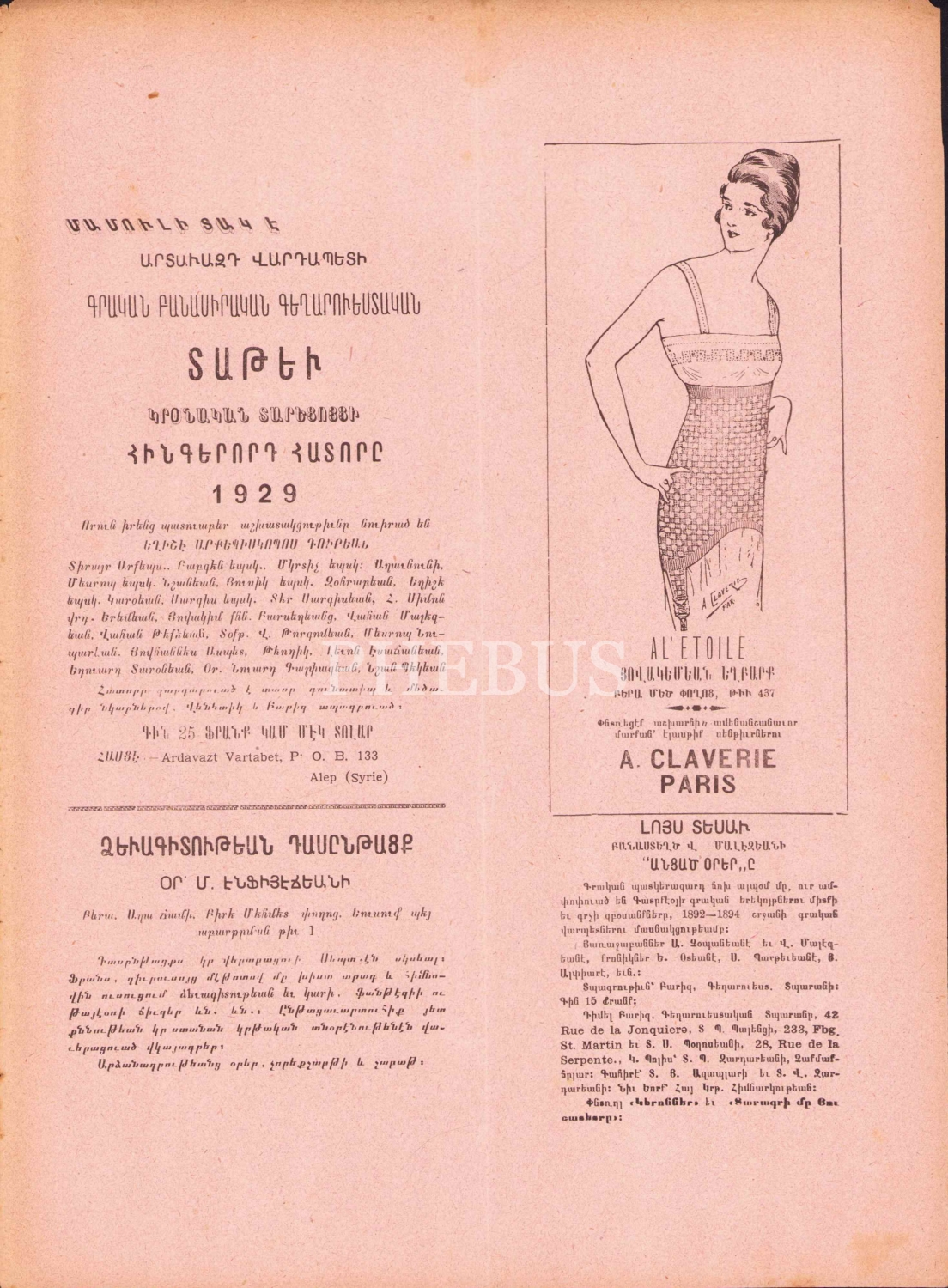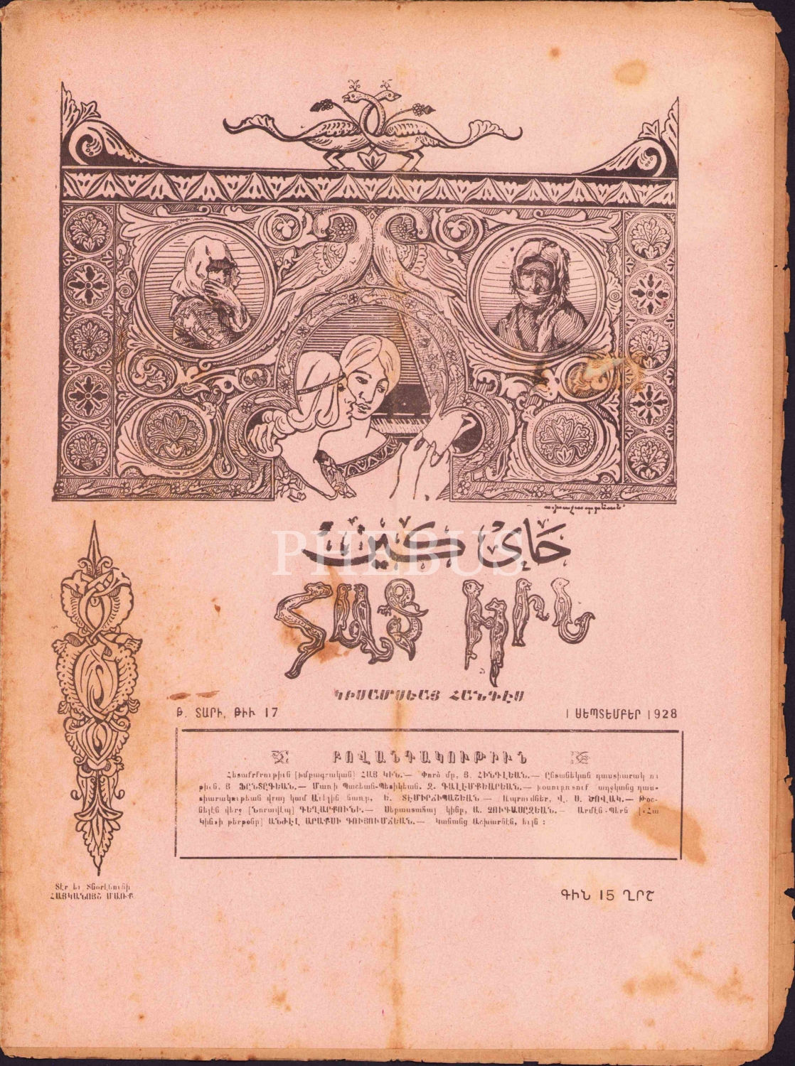 1928 tarihli Ermenice Hay Gın Kadın mecmuası, İmtiyaz sahibi Hayganus Mark, 16 sayfa, 24,5x34 cm.