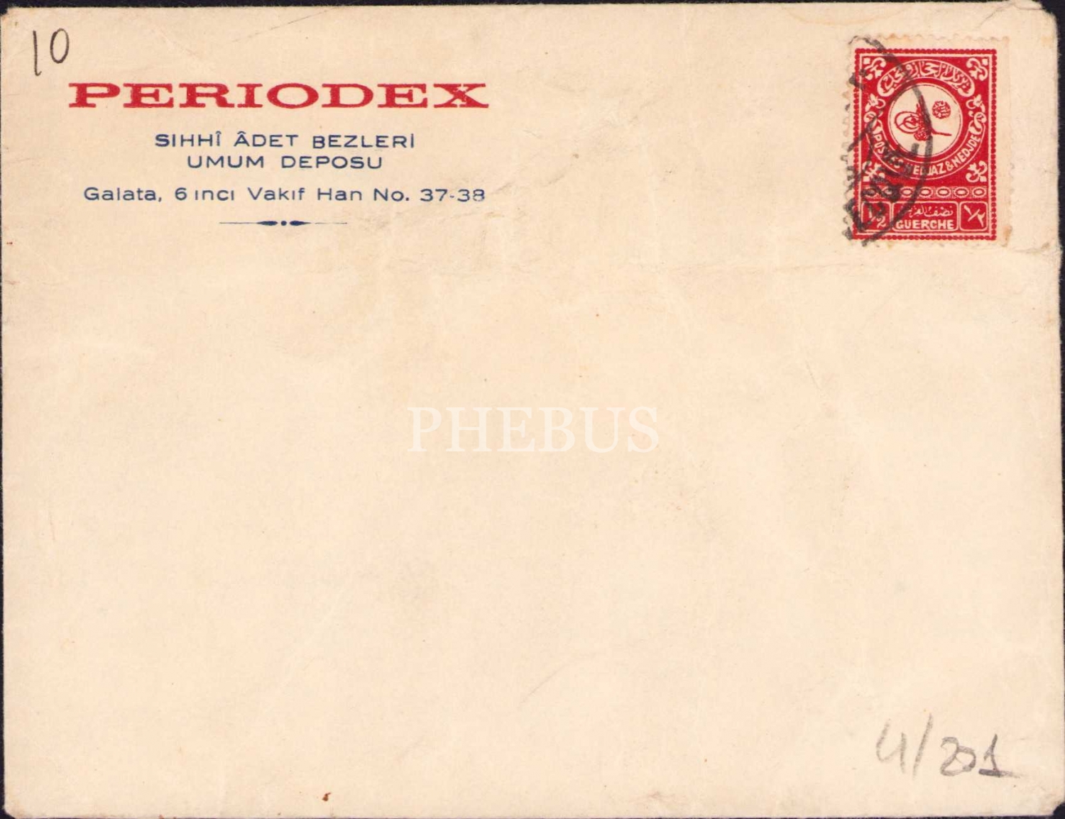 Periodiex Sıhhi Adet Bezleri Umum Deposu antetli zarf, postadan geçmiş