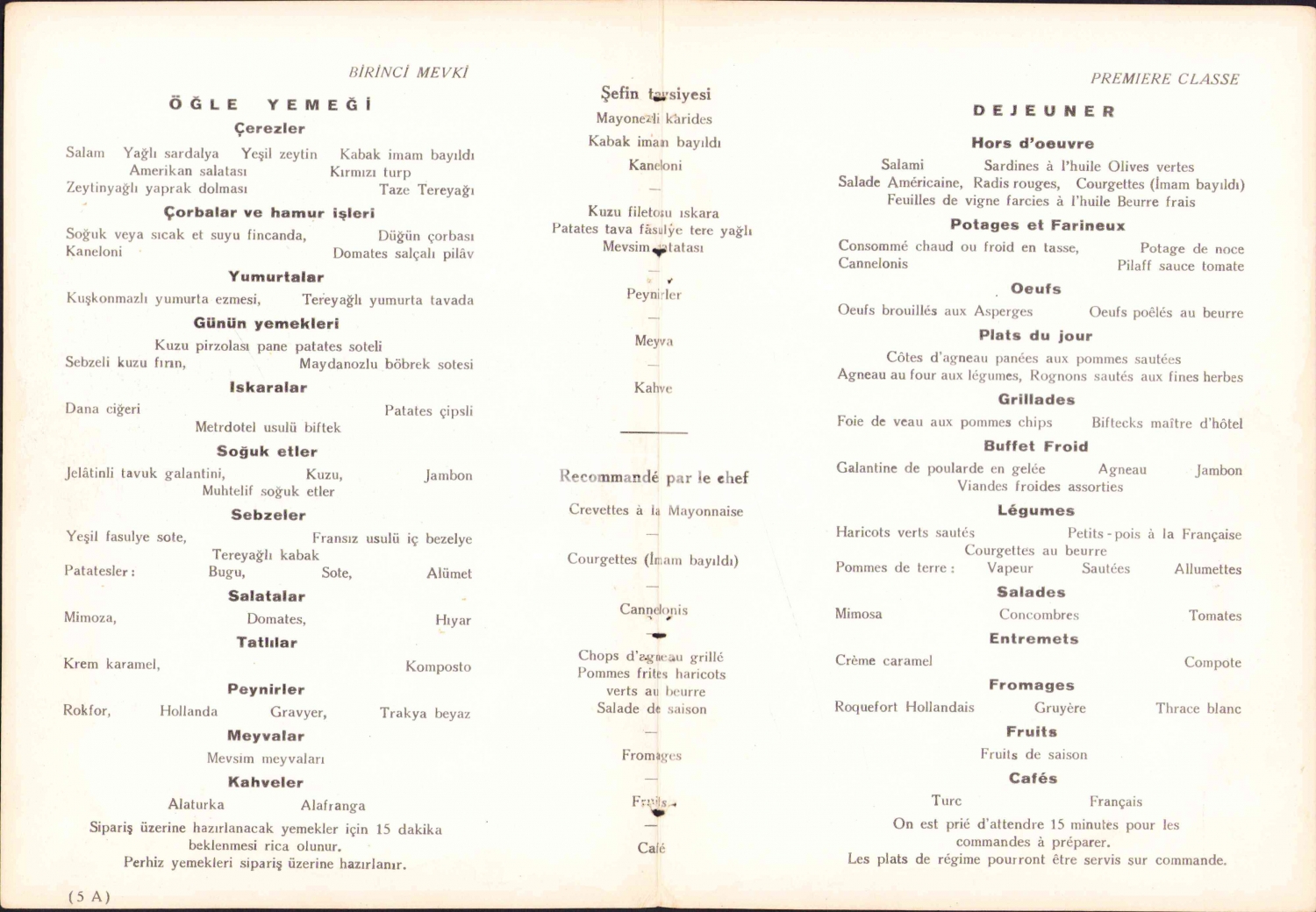 Deniz Bankası TAO, Fransızca Türkçe menü, 16x23 cm
