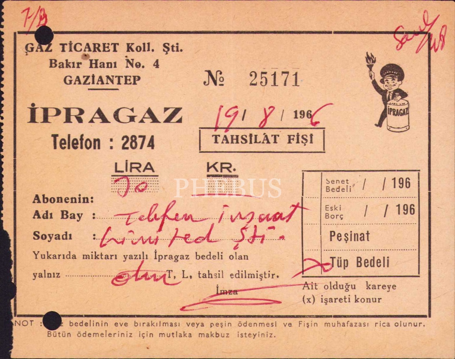 İpragaz tahsilat fişi, 1966, 11x7 cm