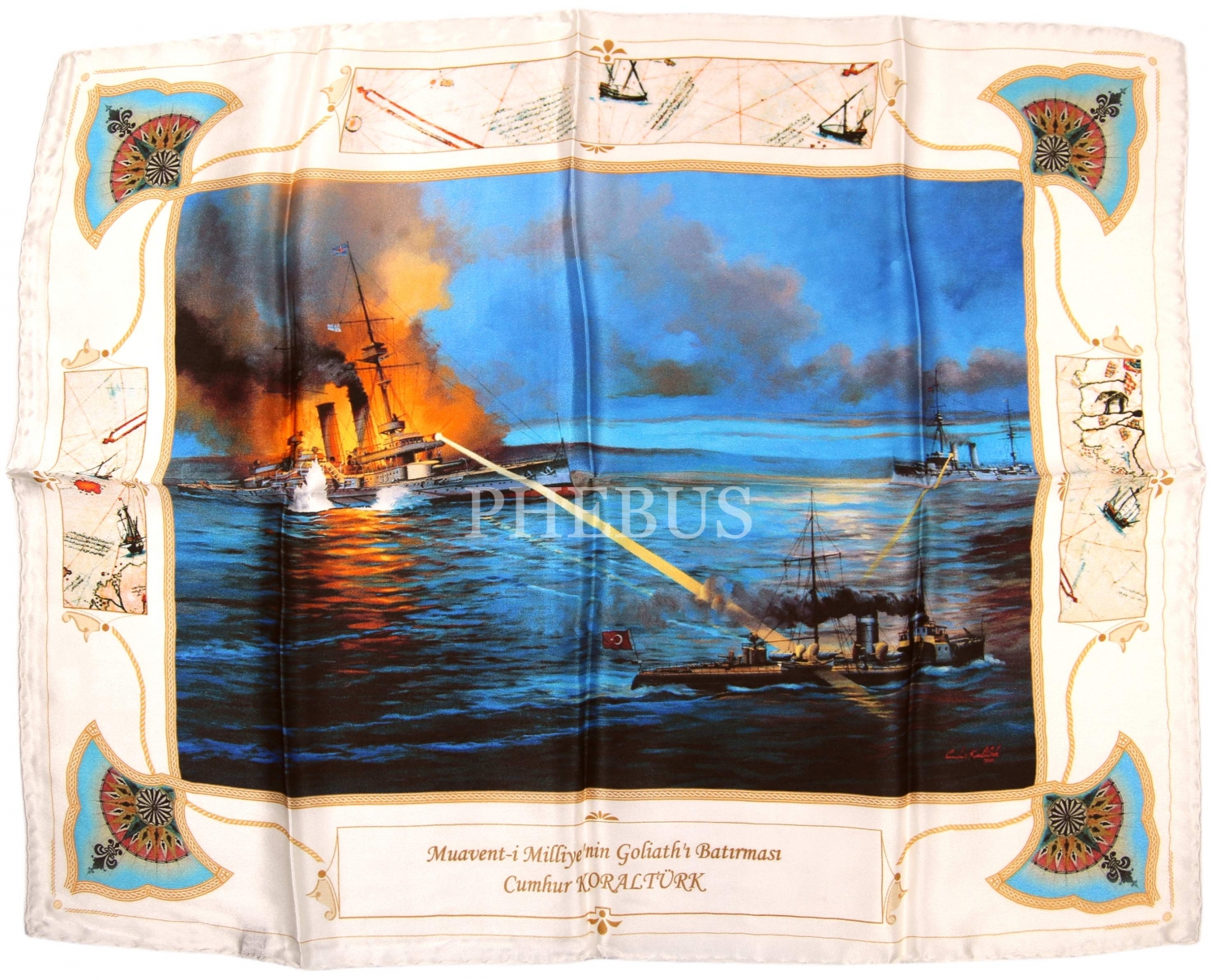 Muavenet-i Milliye'nin Goliath'ı Batırması, ipek mendil, 50x40 cm