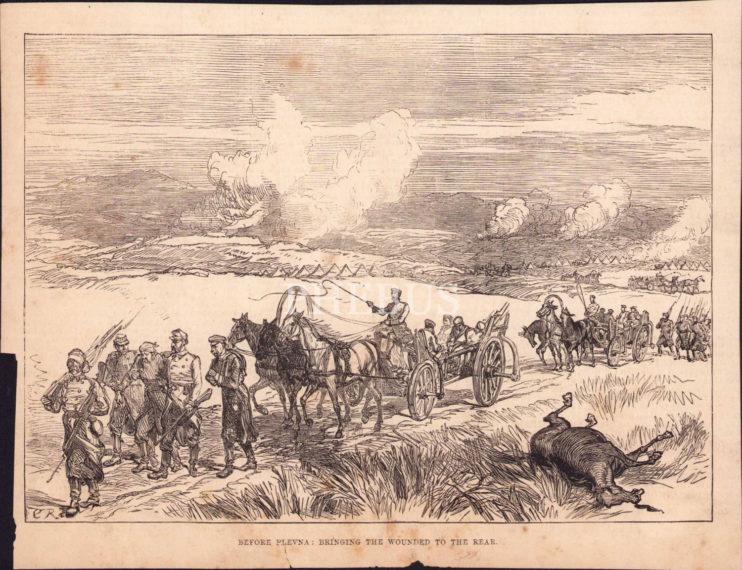 Osmanlı dönemi gravür, Türk - Rus Savaşı, 1877, Plevne, dergiden kesilmiş, 24x16 cm