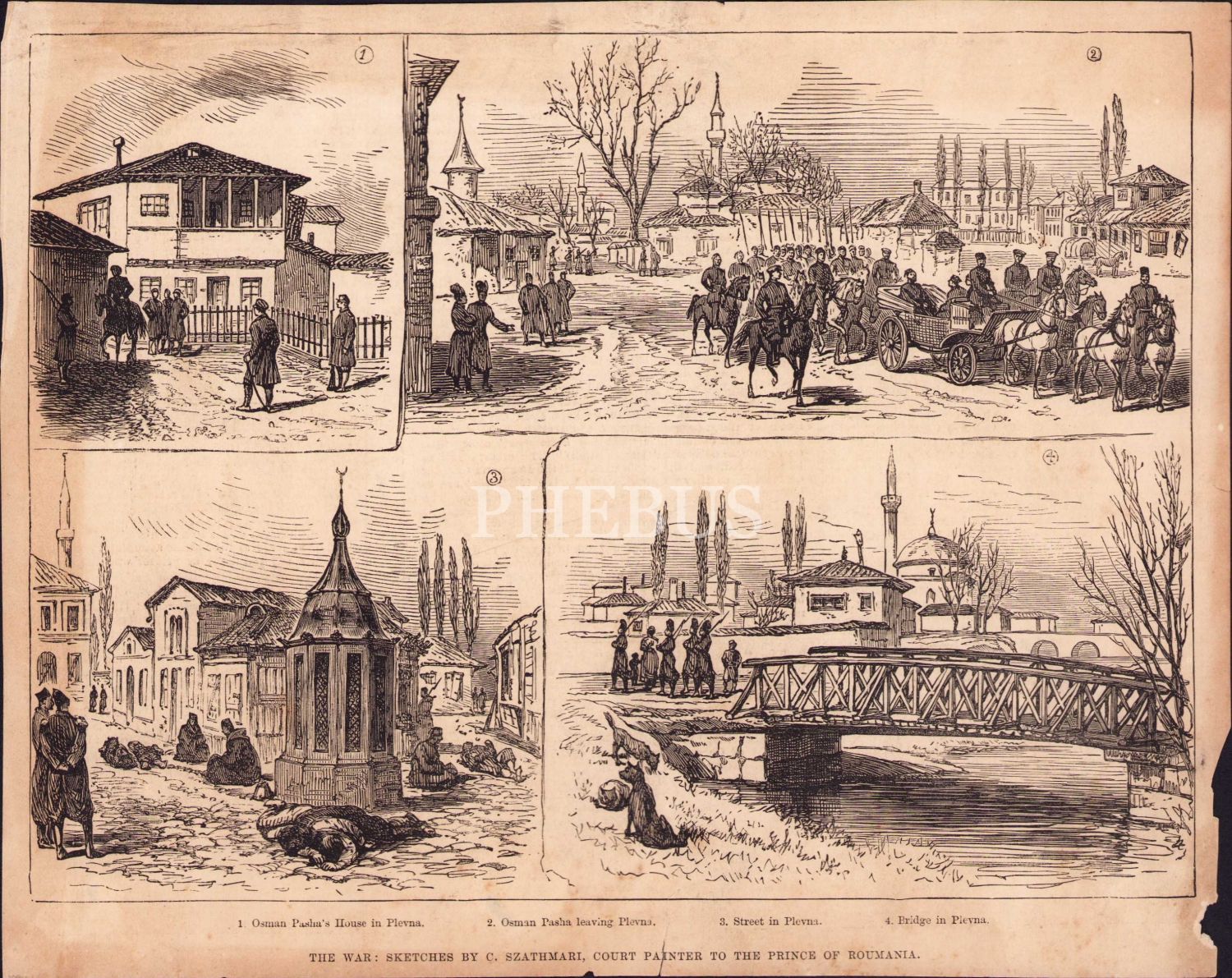 Osmanlı dönemi gravür, Türk - Rus Savaşı, 1877, Plevne, dergiden kesilmiş, bir kenara yırtık, 24x16 cm
