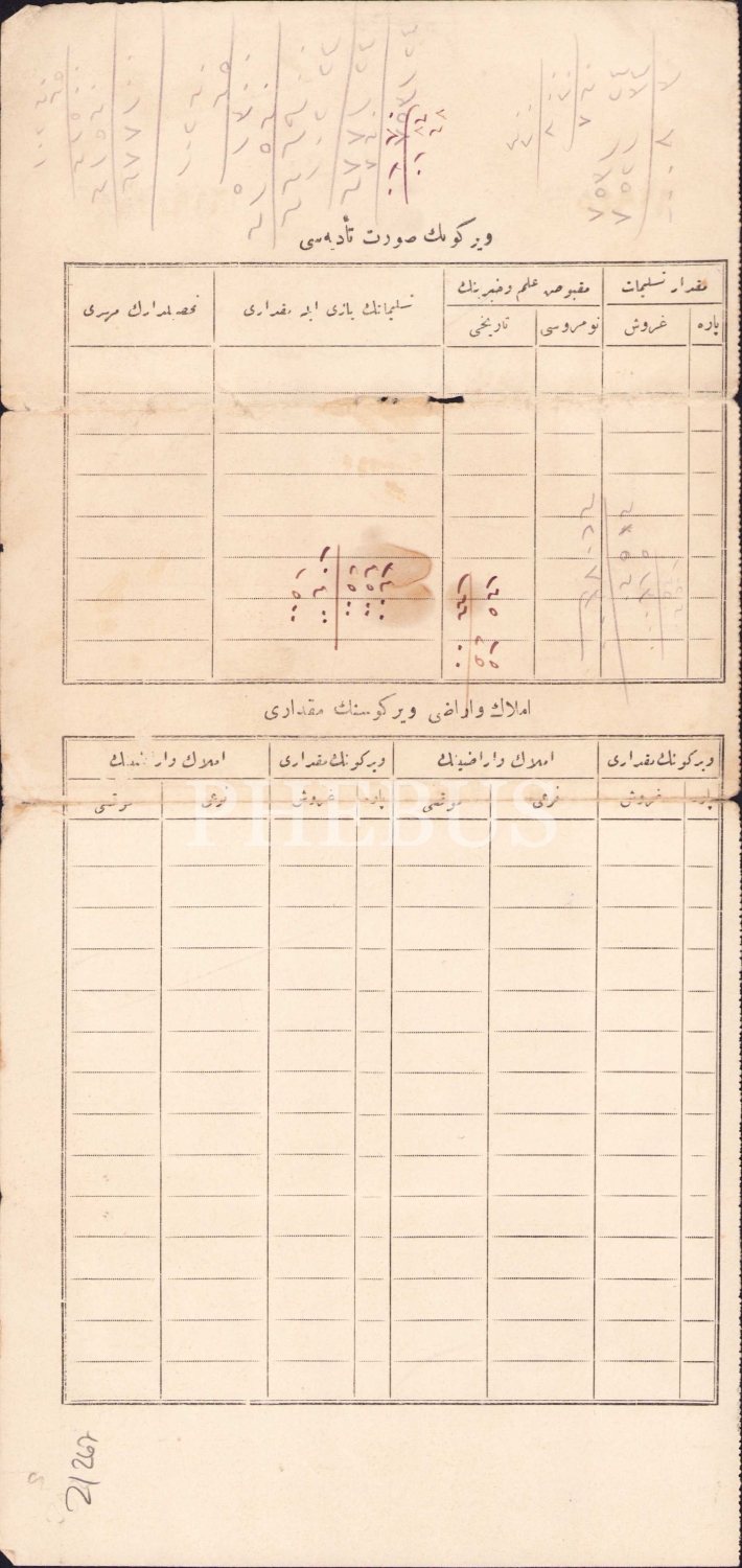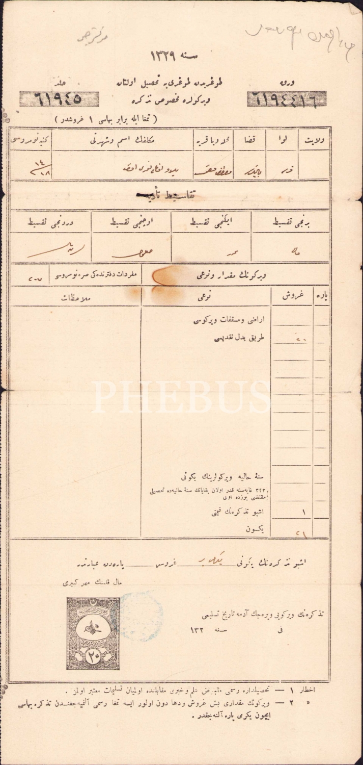 Osmanlıca 1329 senesi doğrudan doğruya tahsil edilen vergilere mahsus tezkire,16x32 cm