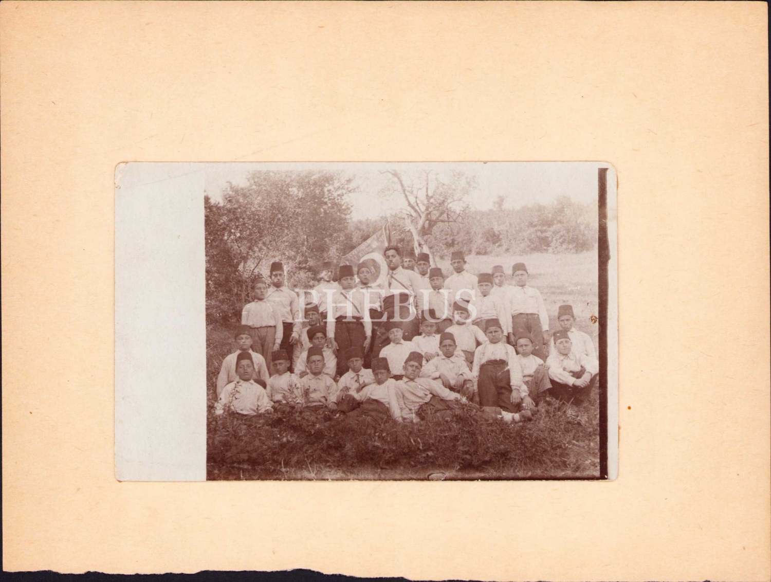 Türk bayrağı üzerinde Rumca yazılı talebeler ve muallim hatırası