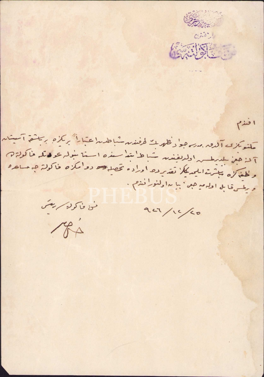 Osmanlıca T.C. Fen Fakültesi damgalı, Osmanlıca mektup, 1926, 13x19 cm