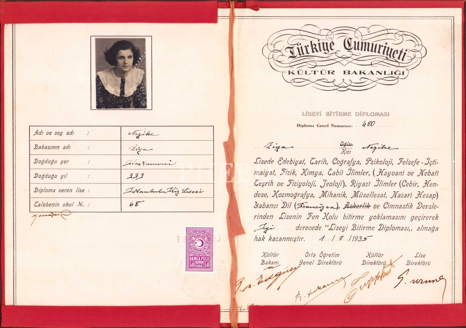 T.C. Kültür Bakanlığı lise diploması, 15x22 cm