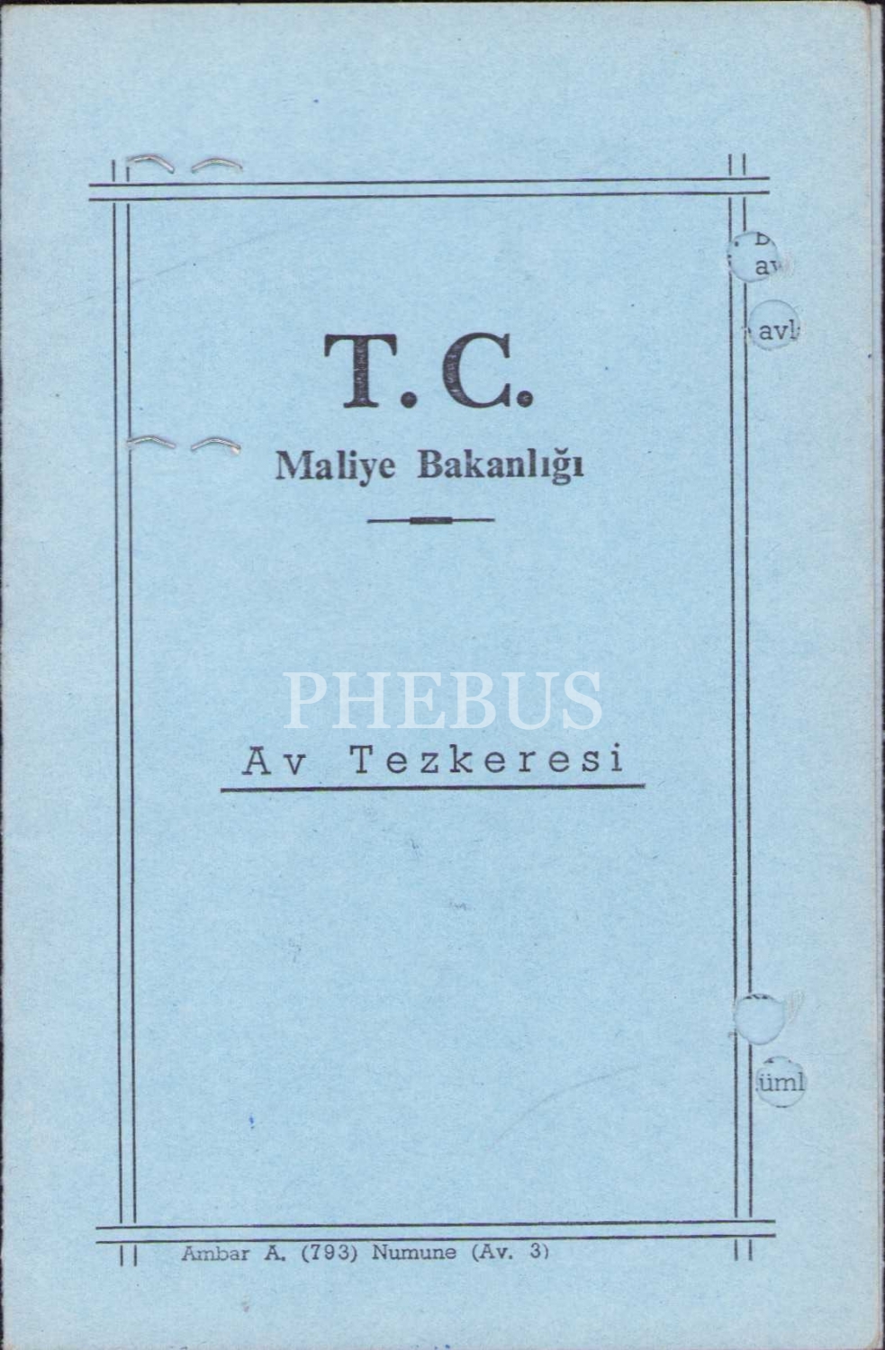 T.C. Maliye Bakanlığı av tezkeresi, 1977, 9x13 cm