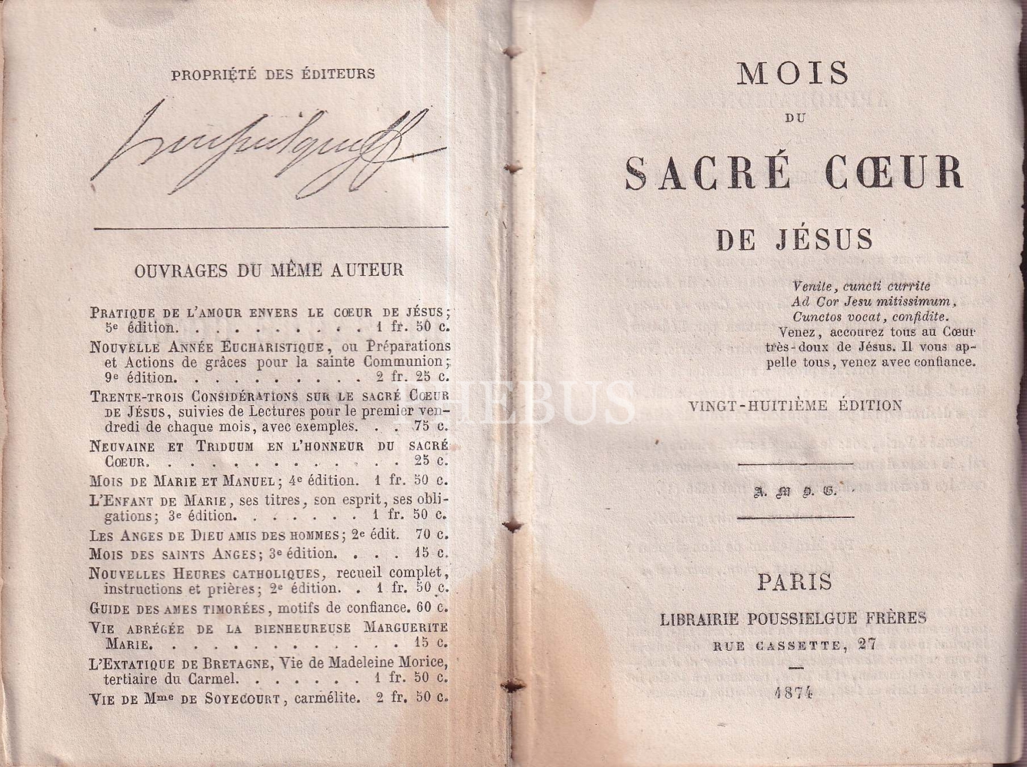 Moıs Du Sacre Coeur De Jésus, 1874 Paris, 356 sayfa, 8x12 cm