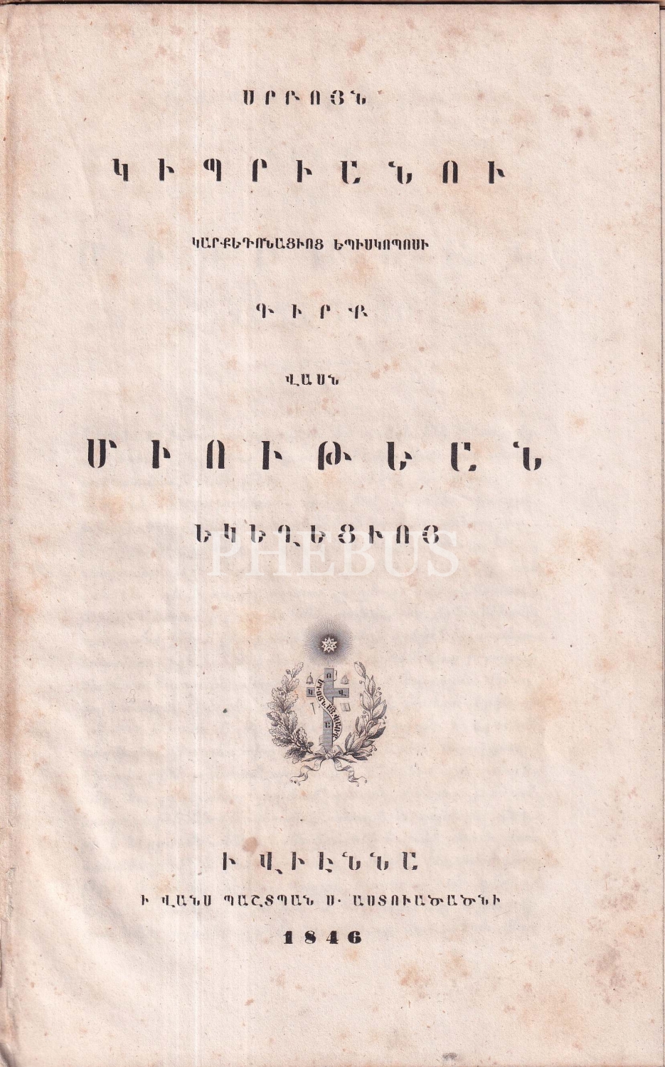 Ermenice kitap, Aziz Cyprian III hakkında, 1846, 24 sayfa, 15x23 cm