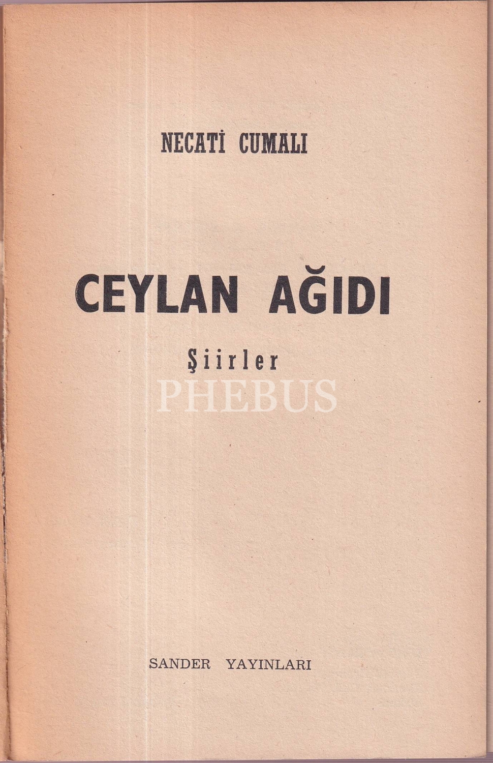 Ceylan Ağıdı, Necati Cumalı, İlk Baskı, 1974, 112 sayfa, 18x12 cm