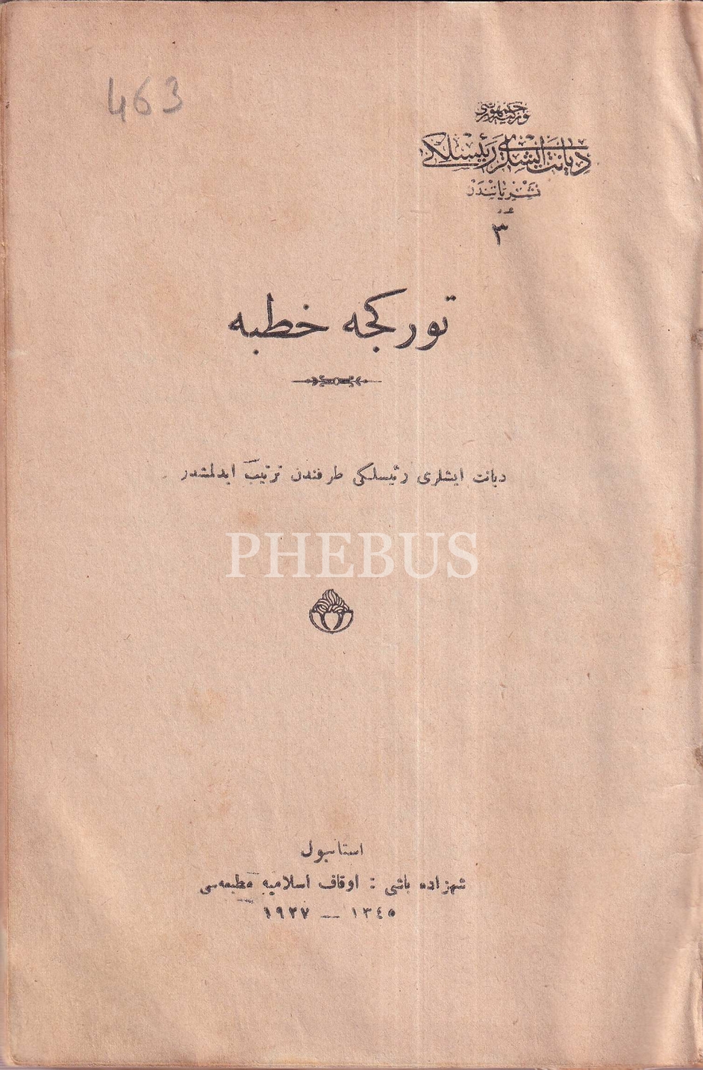 Türkçe Hutbe, Diyanet İşleri Reisliği, İstanbul 1927, Evkâf Matbaası, 269+8+2, 14x20 cm