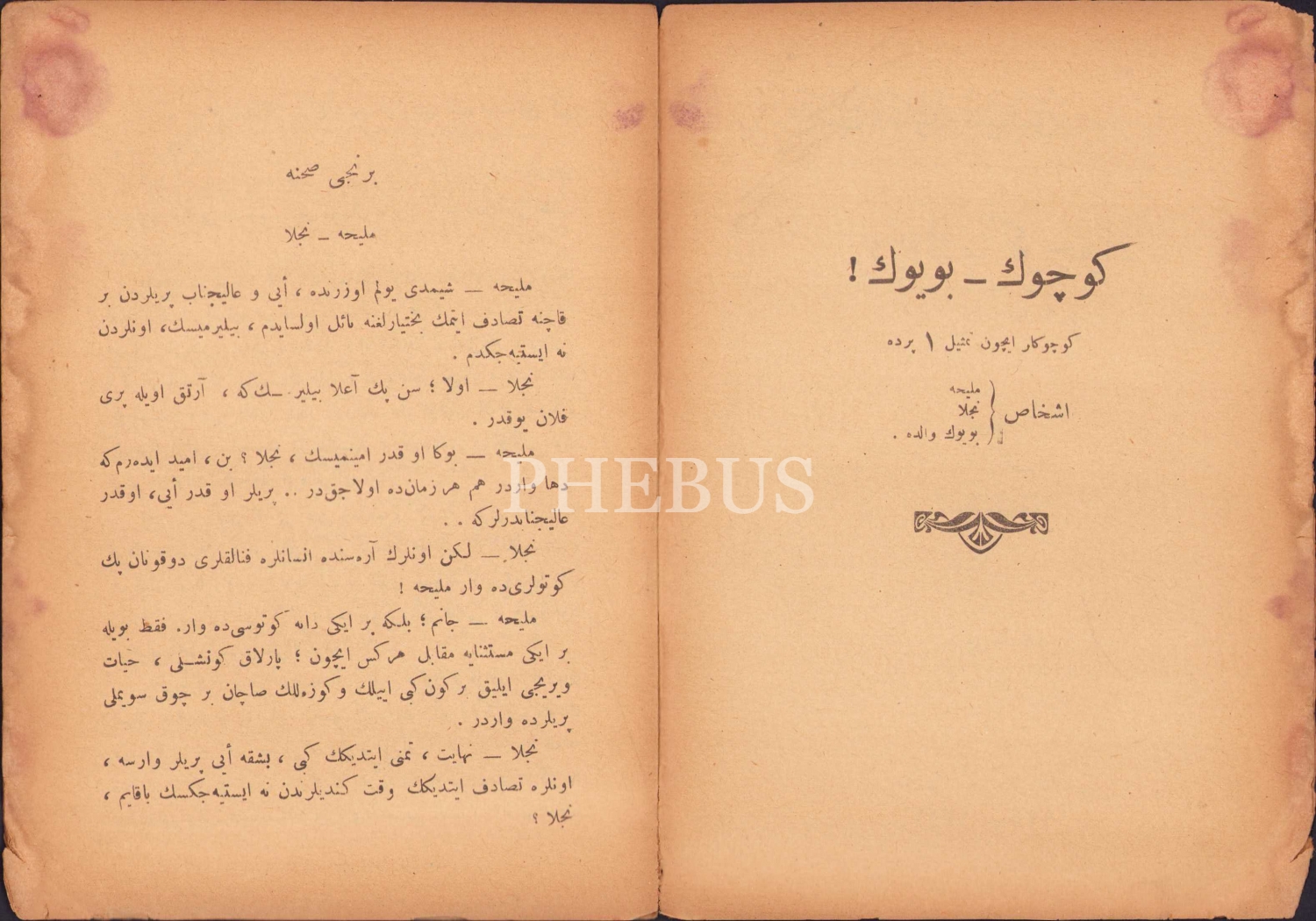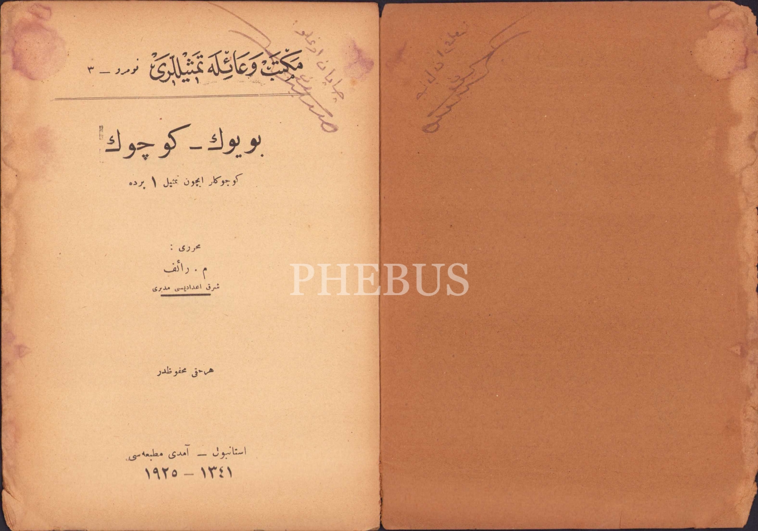 Osmanlıca Metep ve Aile Temsilleri no:3, Büyük - Küçük [Küçükler için temsil 1 perde], M. Raif, Amedi Matbaası, İstanbul, 1925, sayfa kenarları yırtık, 12x16 cm