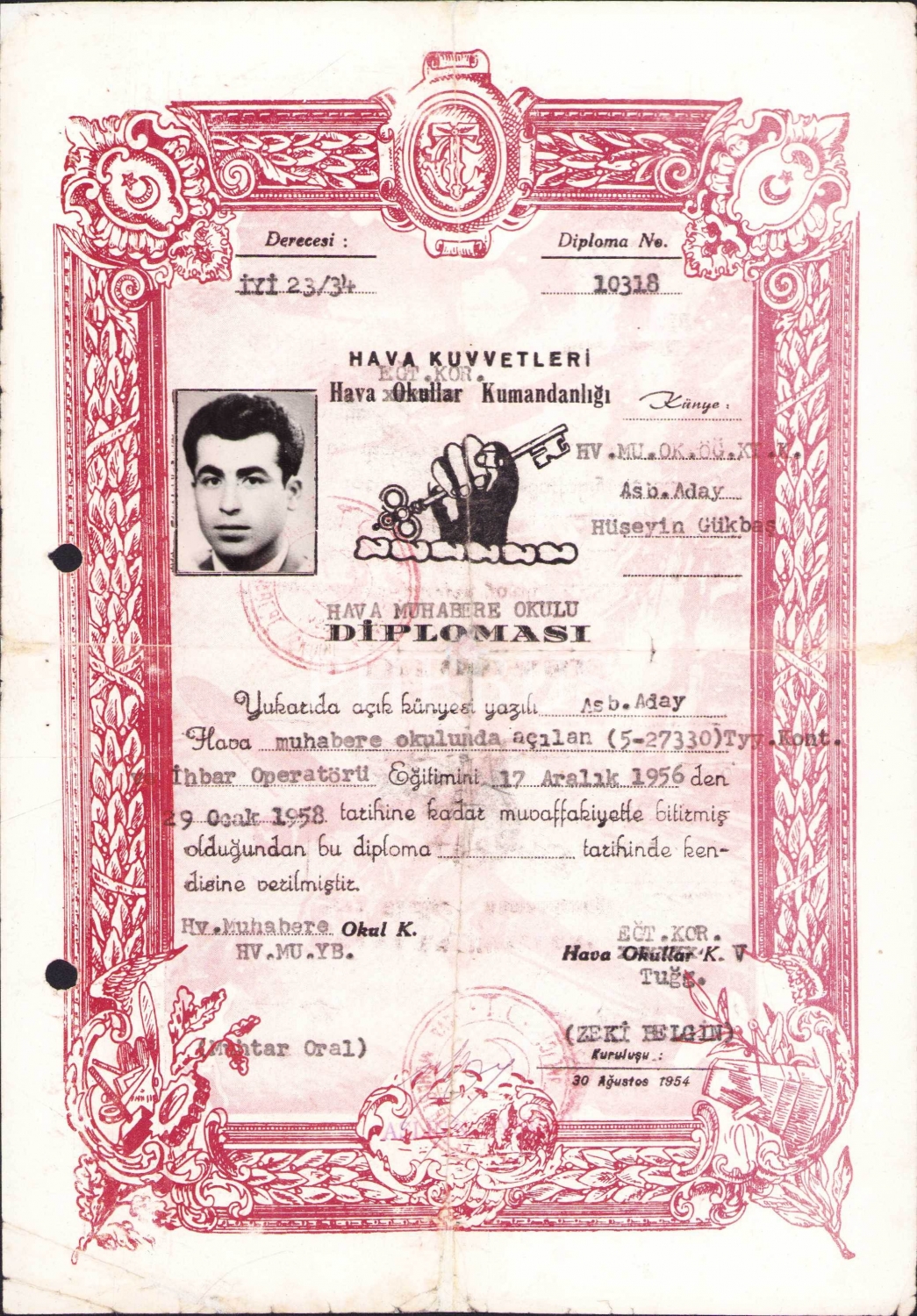 Hava Kuvvetleri Diploması, 1956, haliyle, 17x23 cm