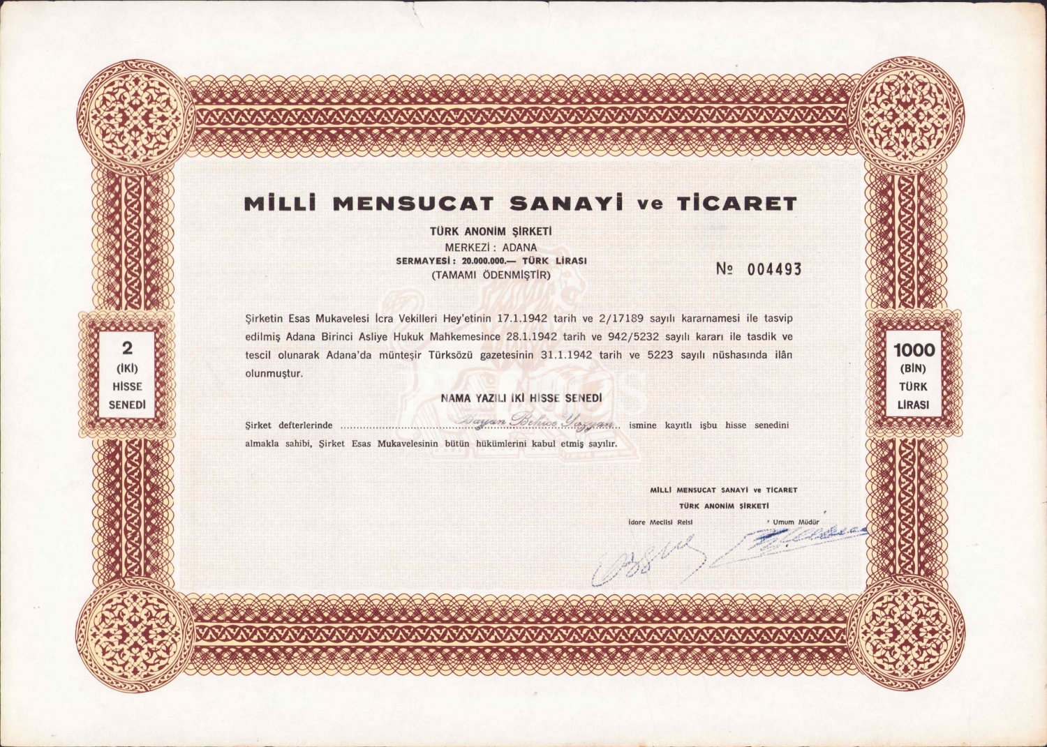 Milli Mensucat Sanayi ve Ticaret Türk Anonim Şirketi Hisse Senedi