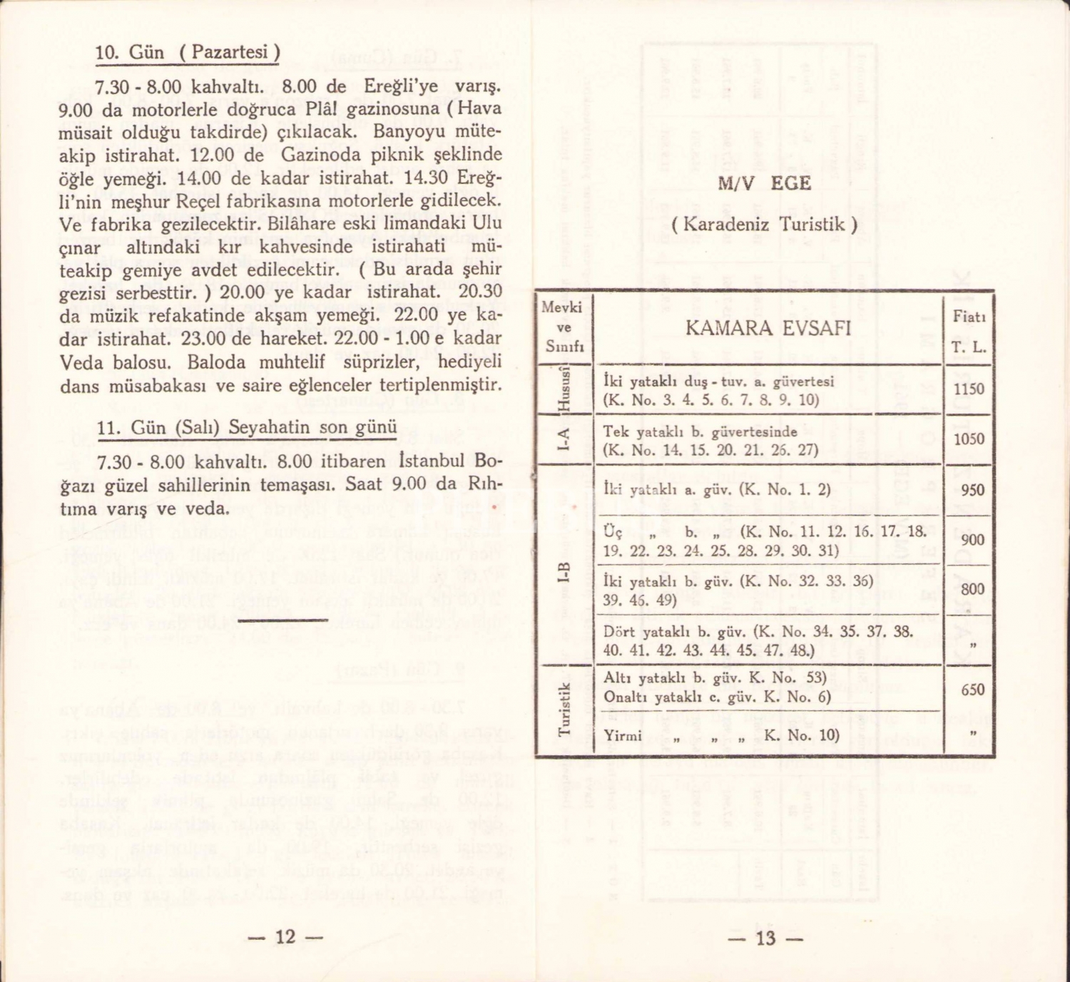Denizyolları 1961 İç Turistik Hattı Broşürü 20x11 cm