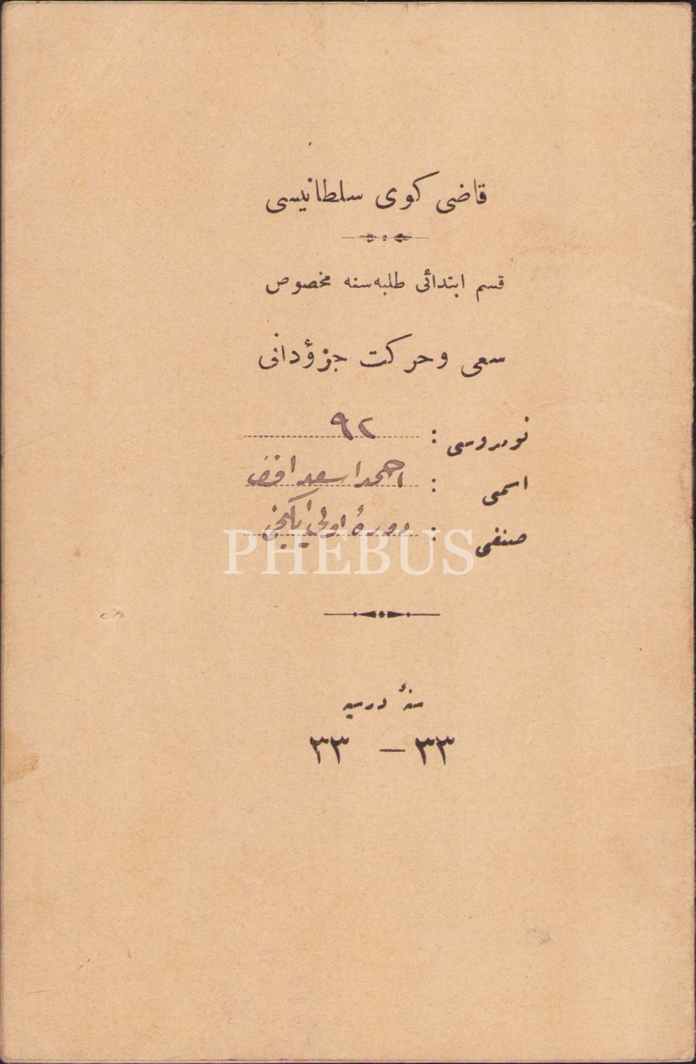 Kadıköy Sultani talebe hareket cüzdanı, 1333, 10x14 cm