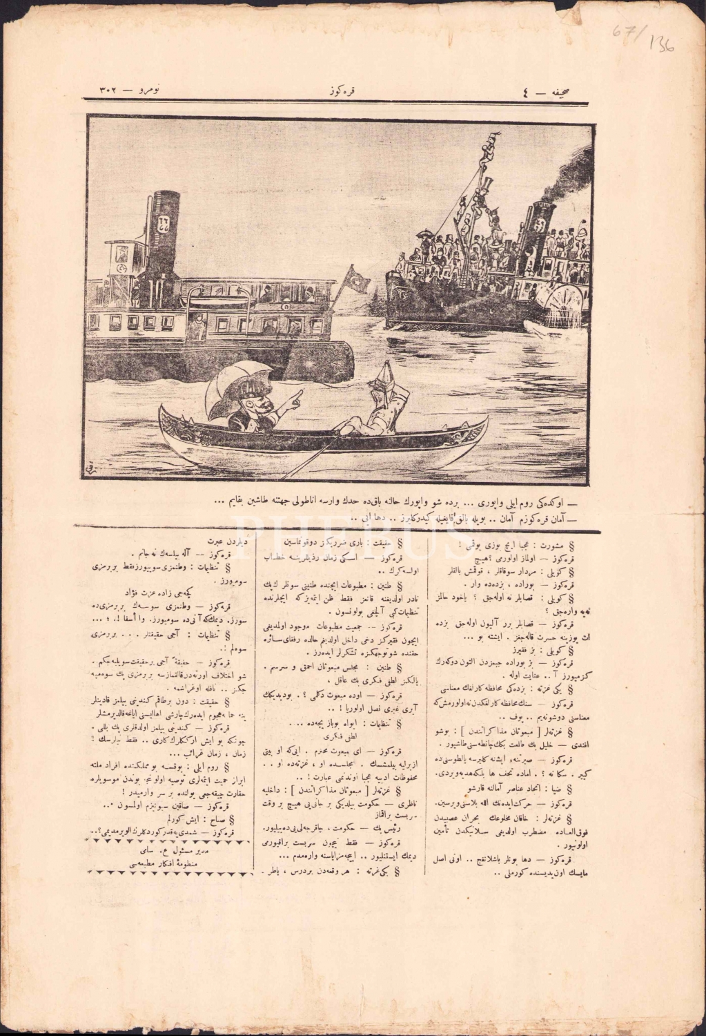 Osmanlıca Karagöz mizah gazetesi, muharriri Mahmud Nedim, 1327, haliyle, 4 sayfa, 28x40 cm