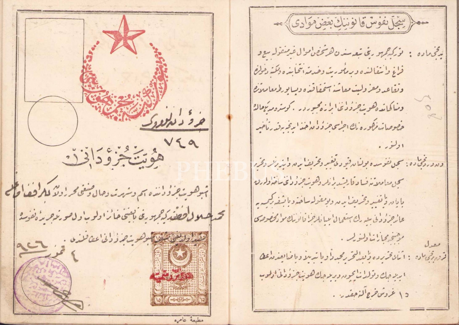 Osmanlıca Hüviyet Cüzdanı, 1926, kabı haliyle, 10x12 cm