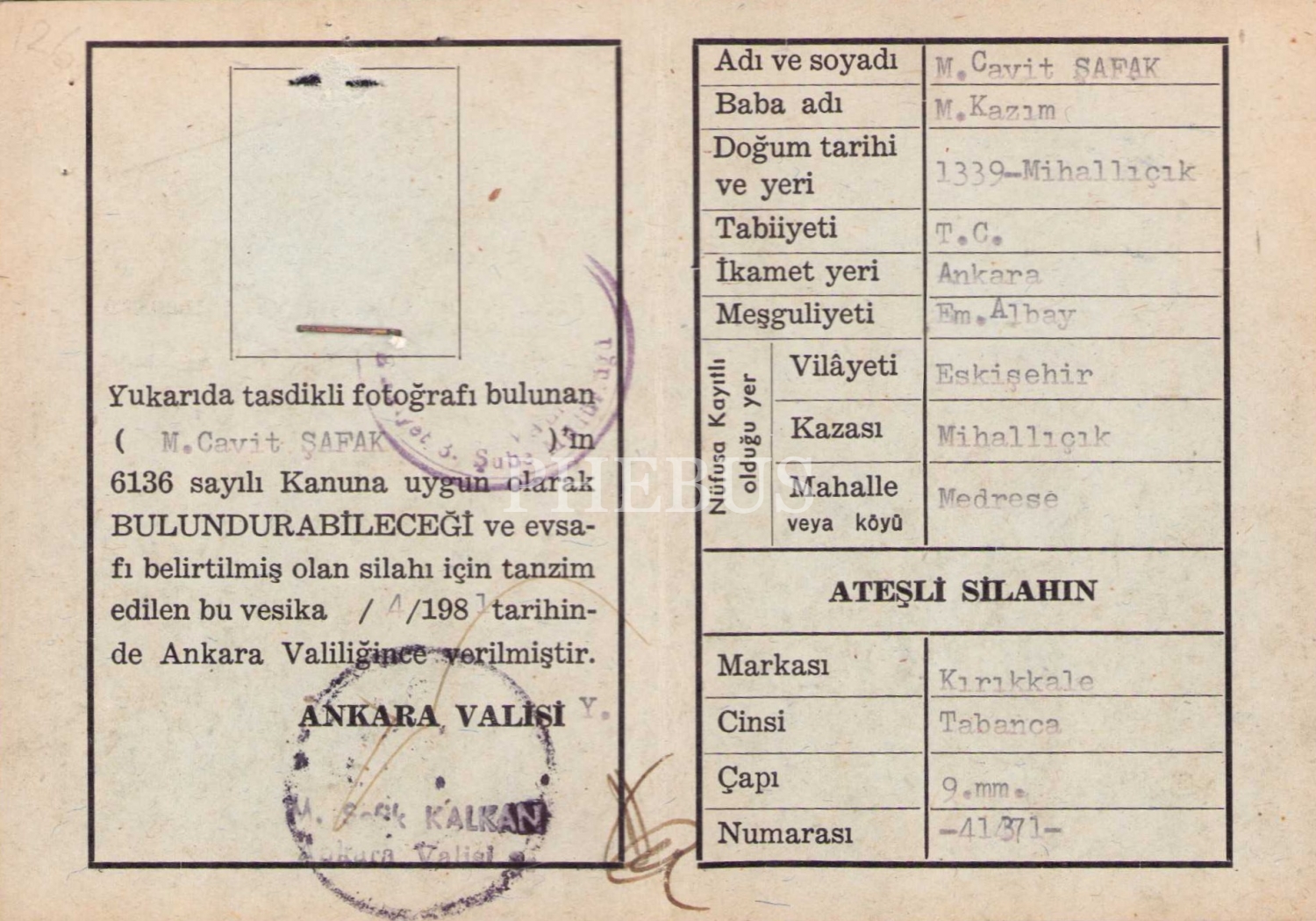 Ateşli silahlara ait vesika, 1981, 8x10 cm
