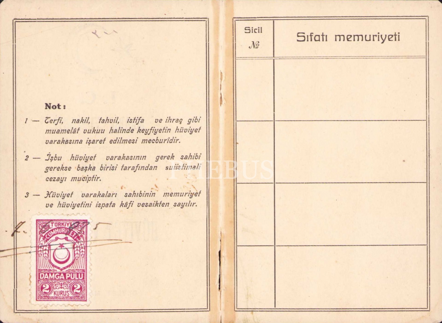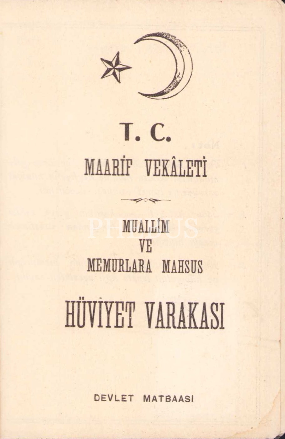 T.C. MF. V. Muallim ve Memurlara mahsus kimlik, 8x12 cm