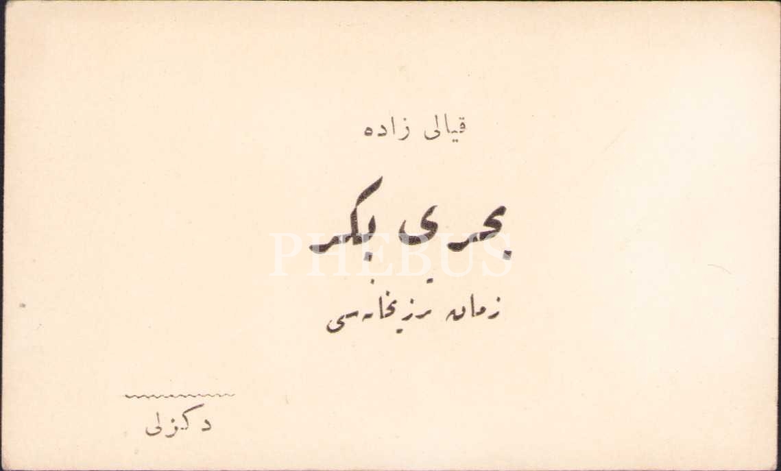 Osmanlıca kartvizit, Kayalı Zade Bahri Beker - Zaman Terzihanesi, Denizli, 9x6 cm