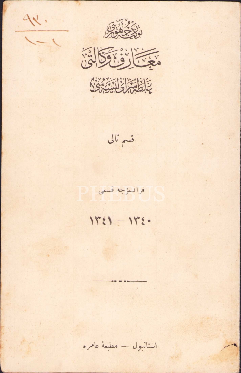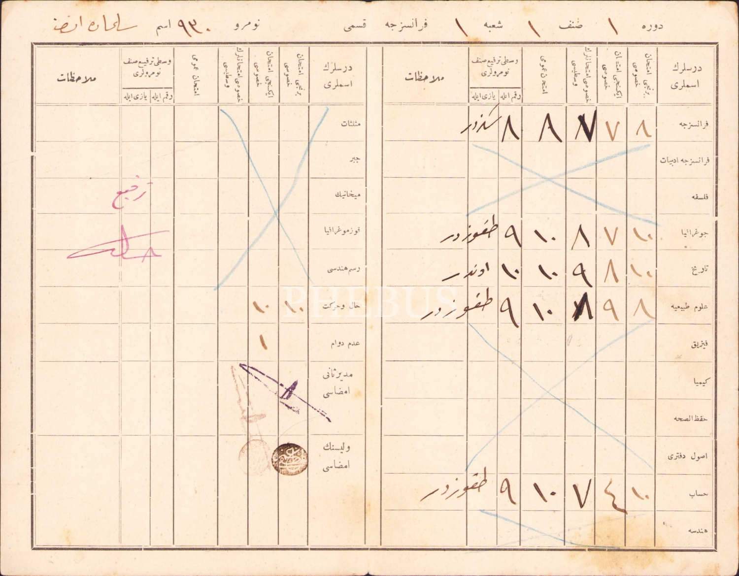 Osmanlıca Galatasaray Lisesi - Fransızca kısmı, 1341 - 1340 ders yılı karne, 11x18 cm