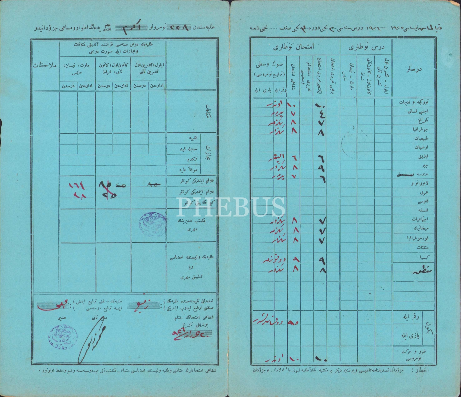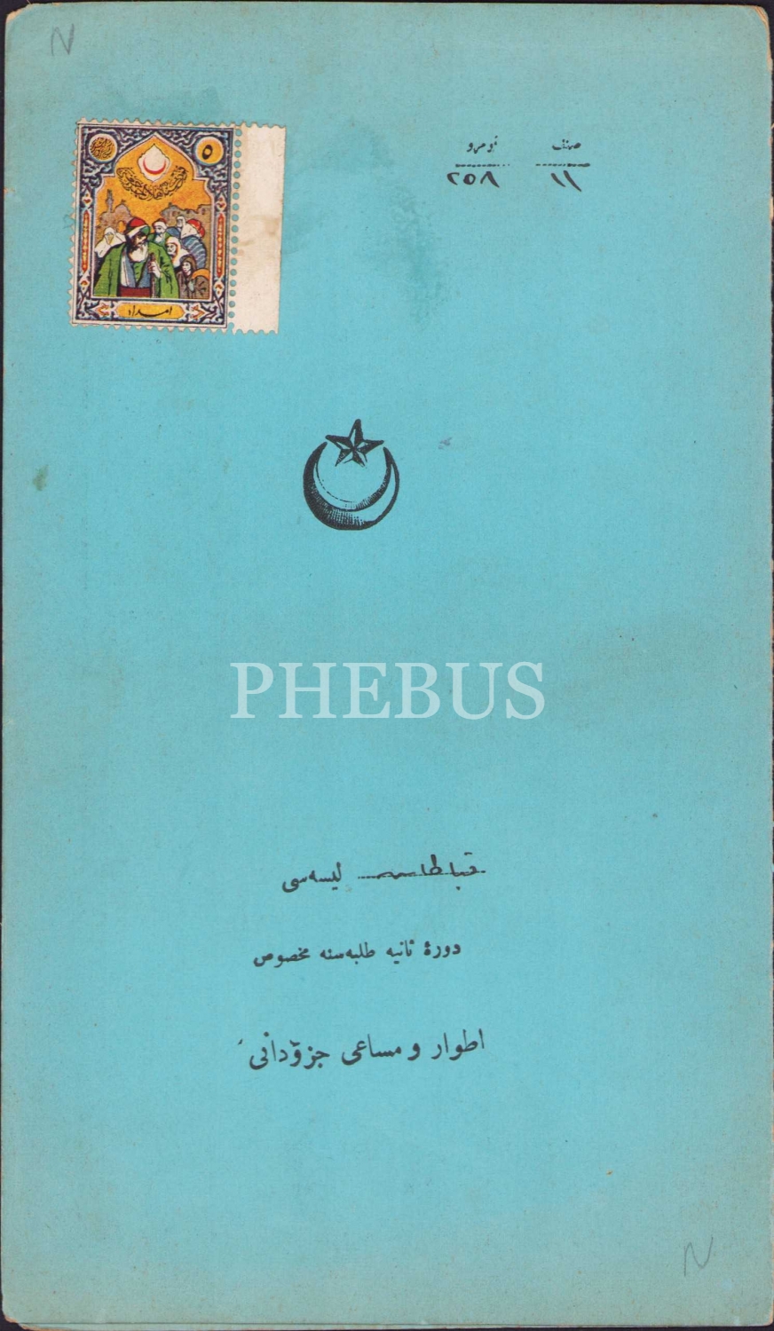 Osmanlıca Kabataş Lisesi 1925 yılı talebe karnesi, ortadan bir kısmı yırtık, 12x20 cm